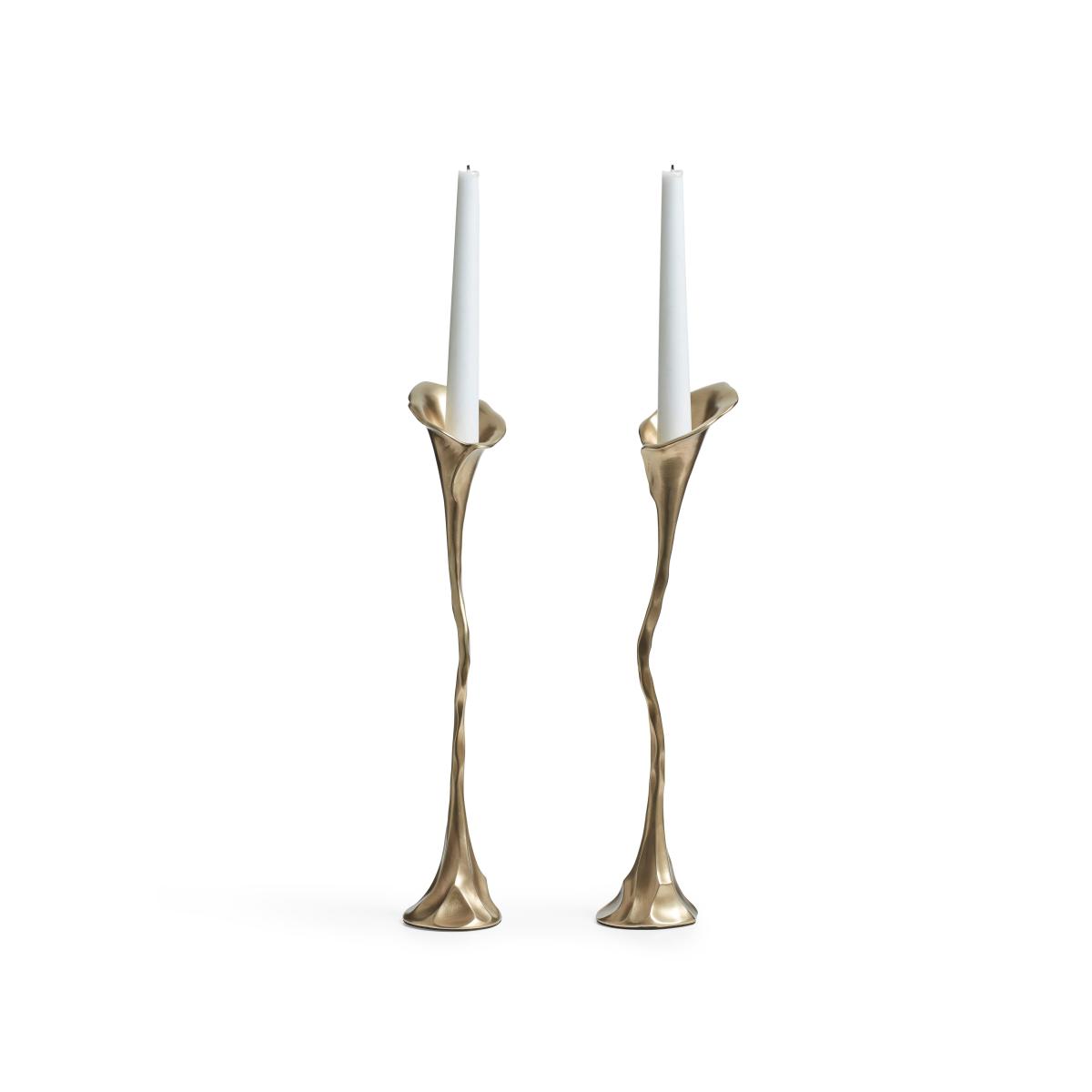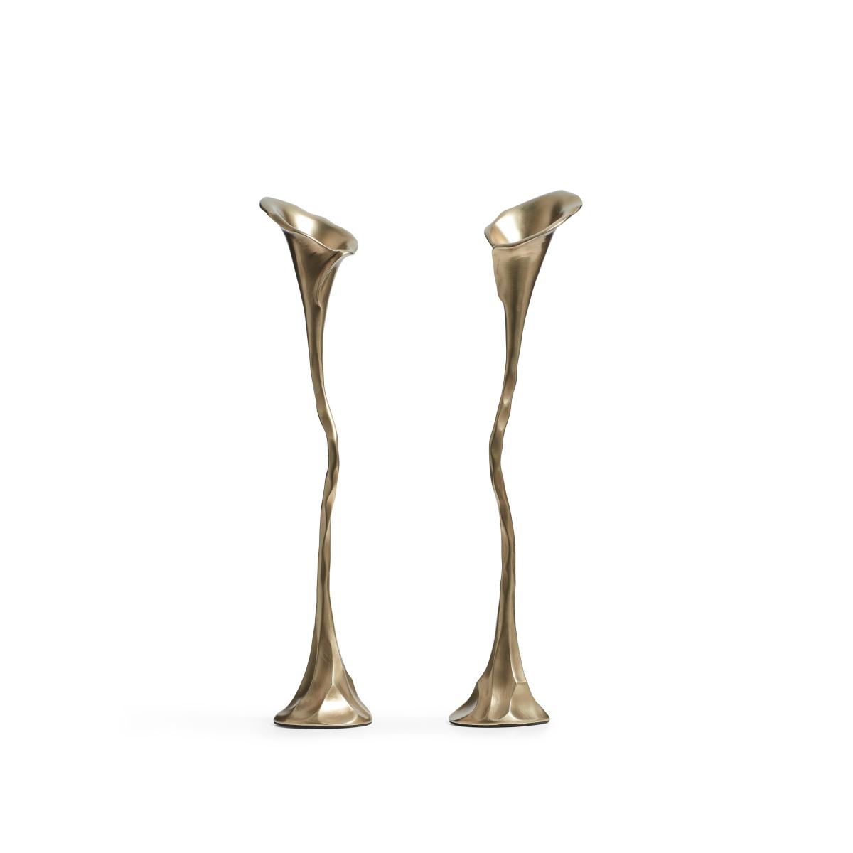 Shaped like two lily stems, this set of two Ninfea Candle Holders adds natural beauty to any space, with an elegant antique-brass finish.