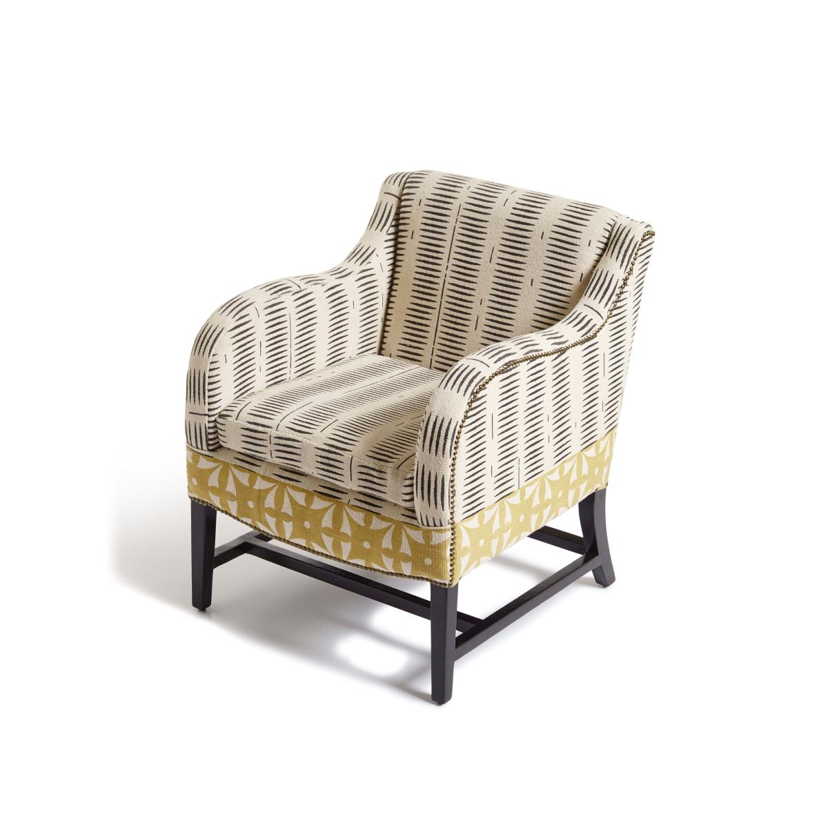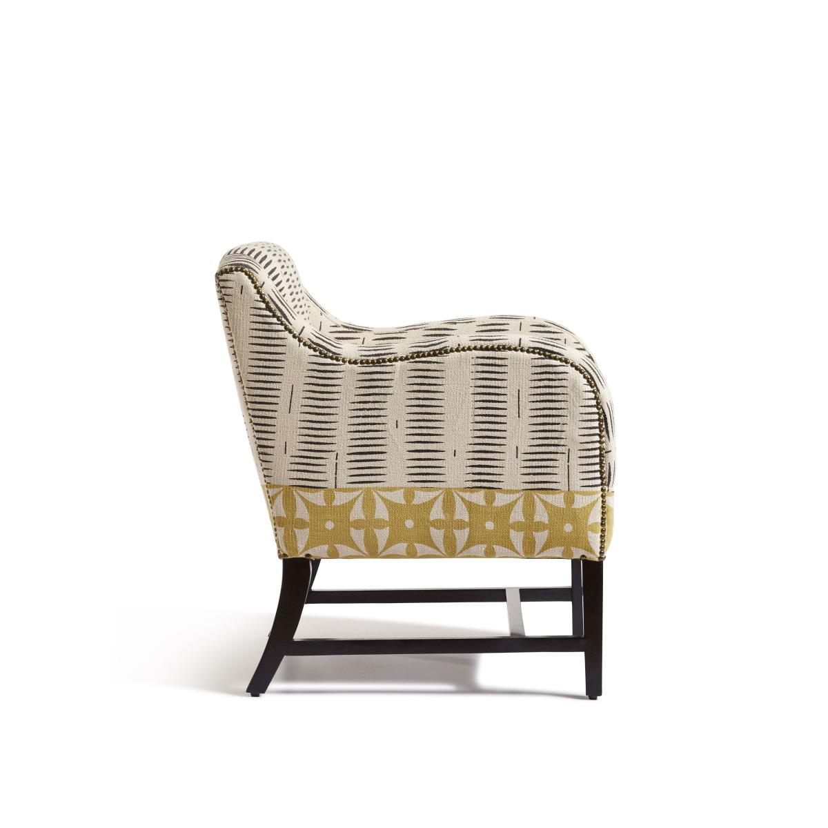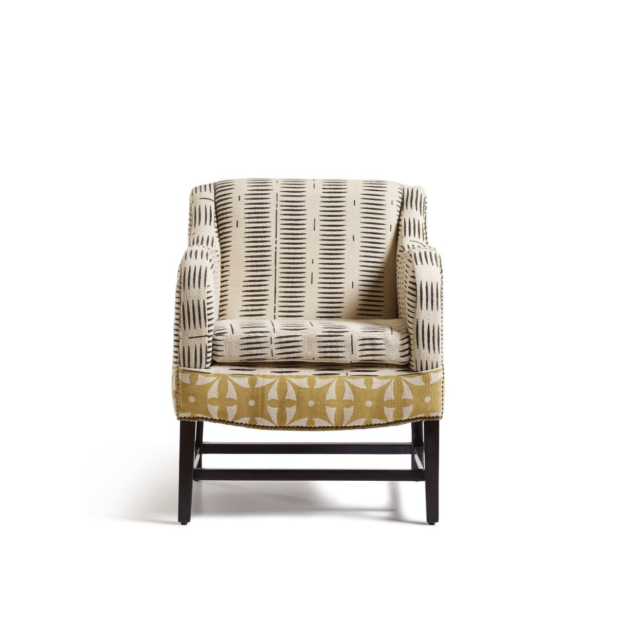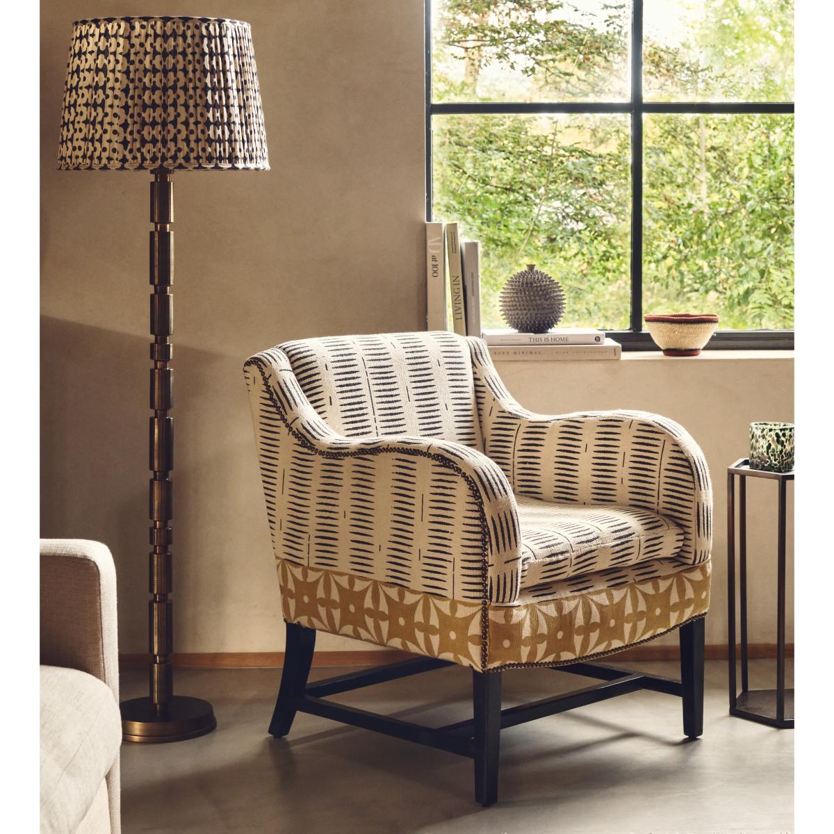 We love mixing and matching patterns at OKA, so we thought why not create a chair that does that for you. Enjoy the contrasting patterns of our Nomeko Armchair, upholstered in a printed cotton dhurrie rug. The dhurrie is handwoven and hand screen printed which lends each piece individual characteristics that add to their charm. The back legs and arms of the chair showcase pleasing curves that counteract the straight lines of the front legs, backrest and the black markings of the print.