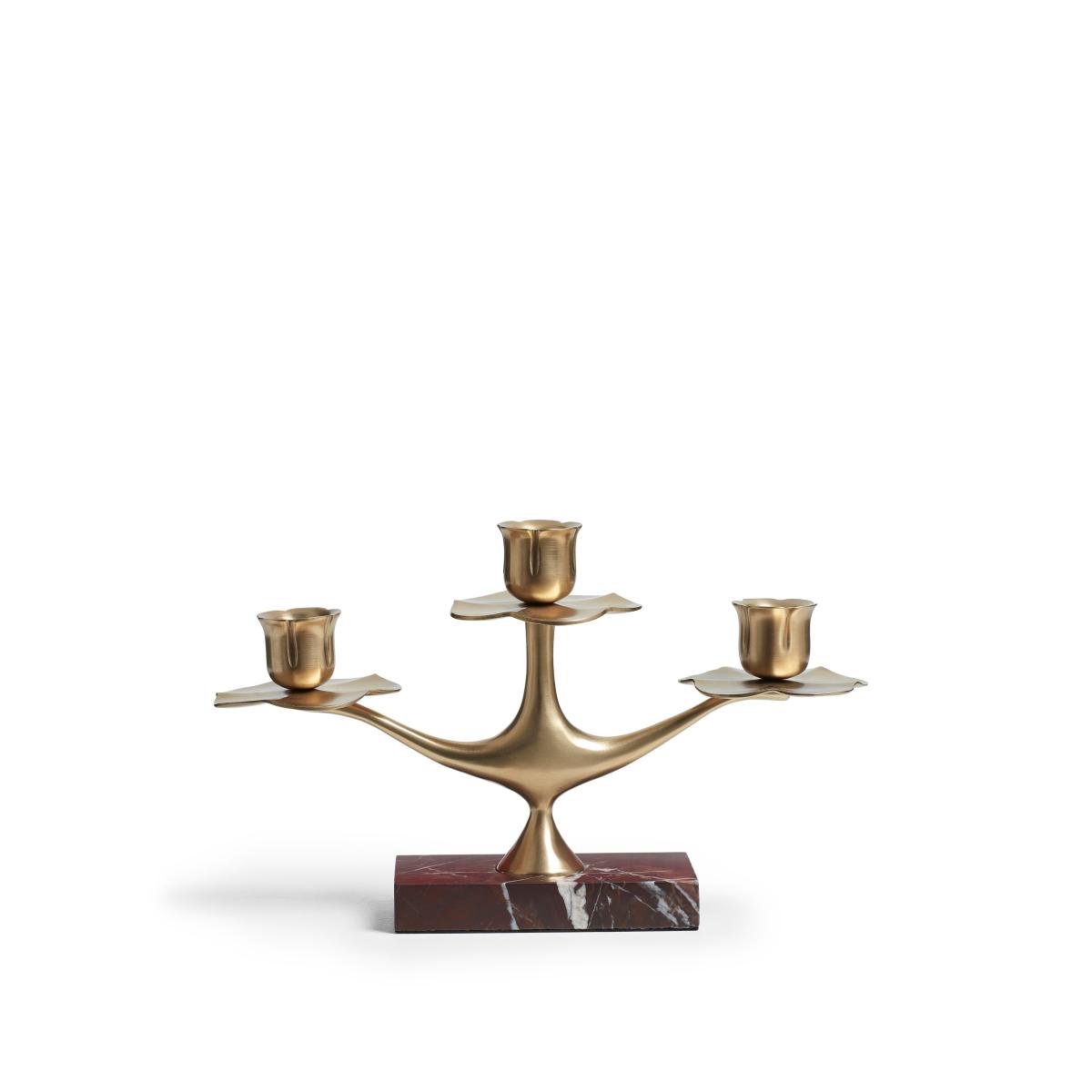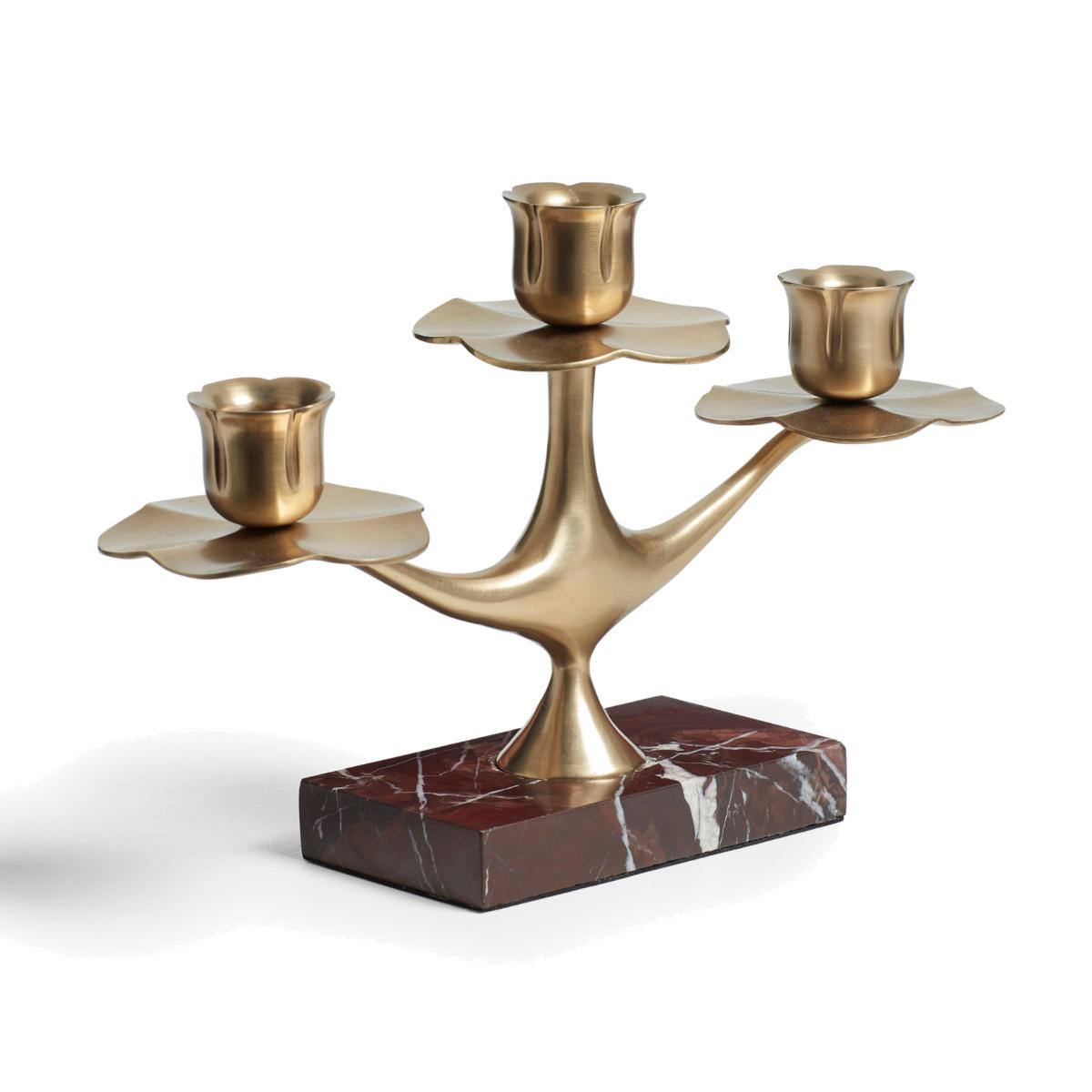 Named after its water lily design, the Nymphaea Candle Holder features a red-veined marble base and a cast-brass holder in antique-bronze. Inspired by vintage styles, further details come in the form of beautiful petals, while the holders themselves are designed for tapers.