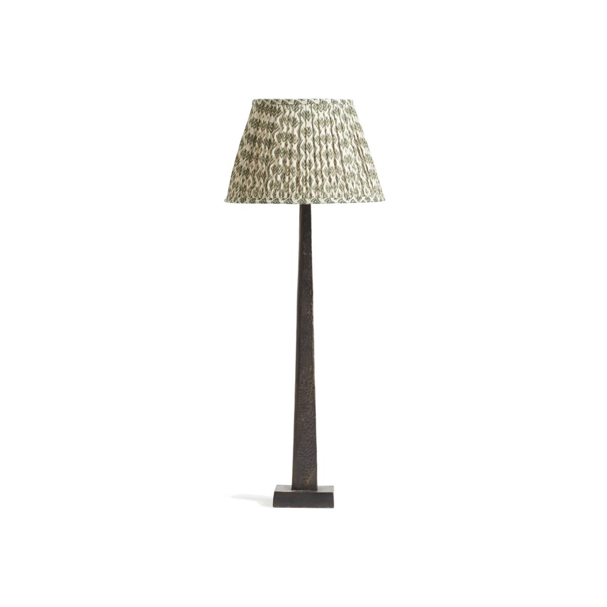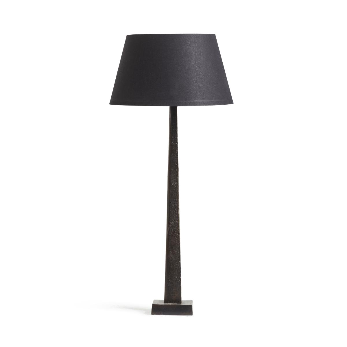 Our Obelisque Table Lamp has a tapered metal base achieved through aluminium casting. The metal is then hand finished for a textural appearance, painted black and sprayed with brown tones, then waxed for additional definition and shine. The artisanal process will result in each piece having individual characteristics.