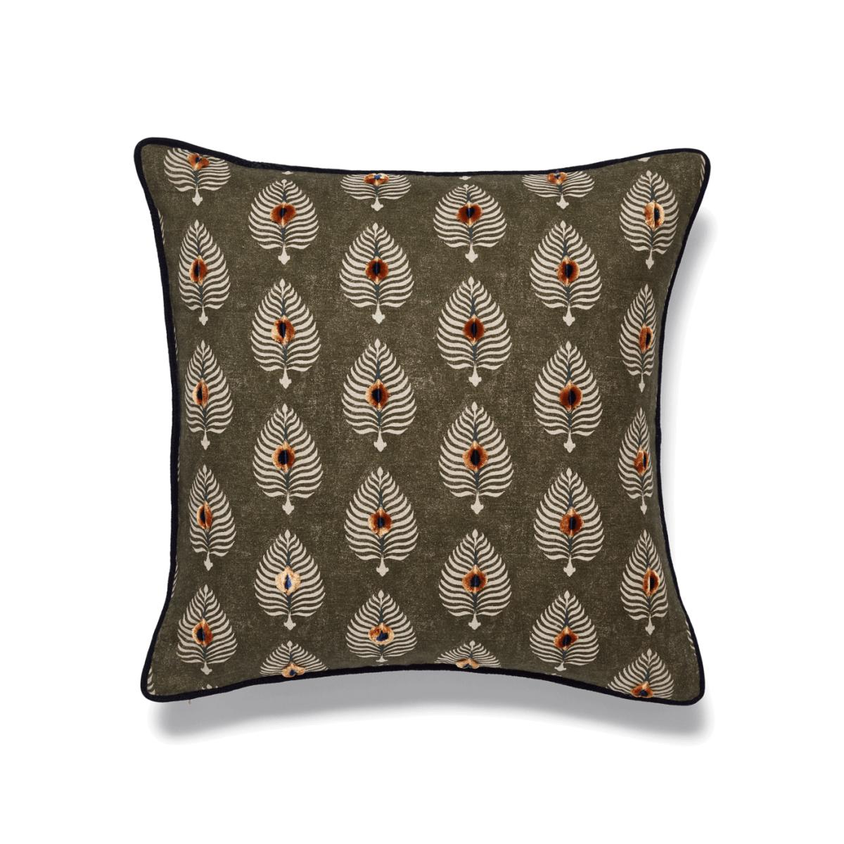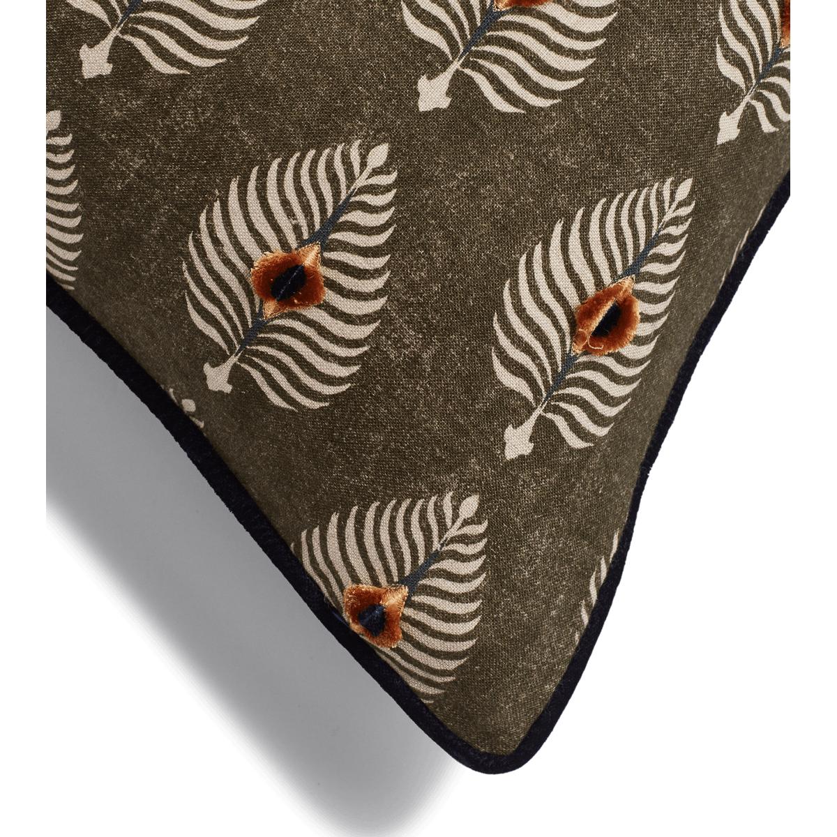 Taking inspiration from the beauty of the natural world, the Ocellus Cushion Cover makes a feature of the series of peacock-feather motifs that cover its front. A popular symbol for a number of cultures, the peacock is regarded variously as signalling nobility, dignity and rejuvenation; add a touch of any one of these traits to a sofa or favourite armchair, with this opulently, embroidered piece – each finished by hand. The muted green shade of this Ocellus is sure to bring some botanical style to your interiors.