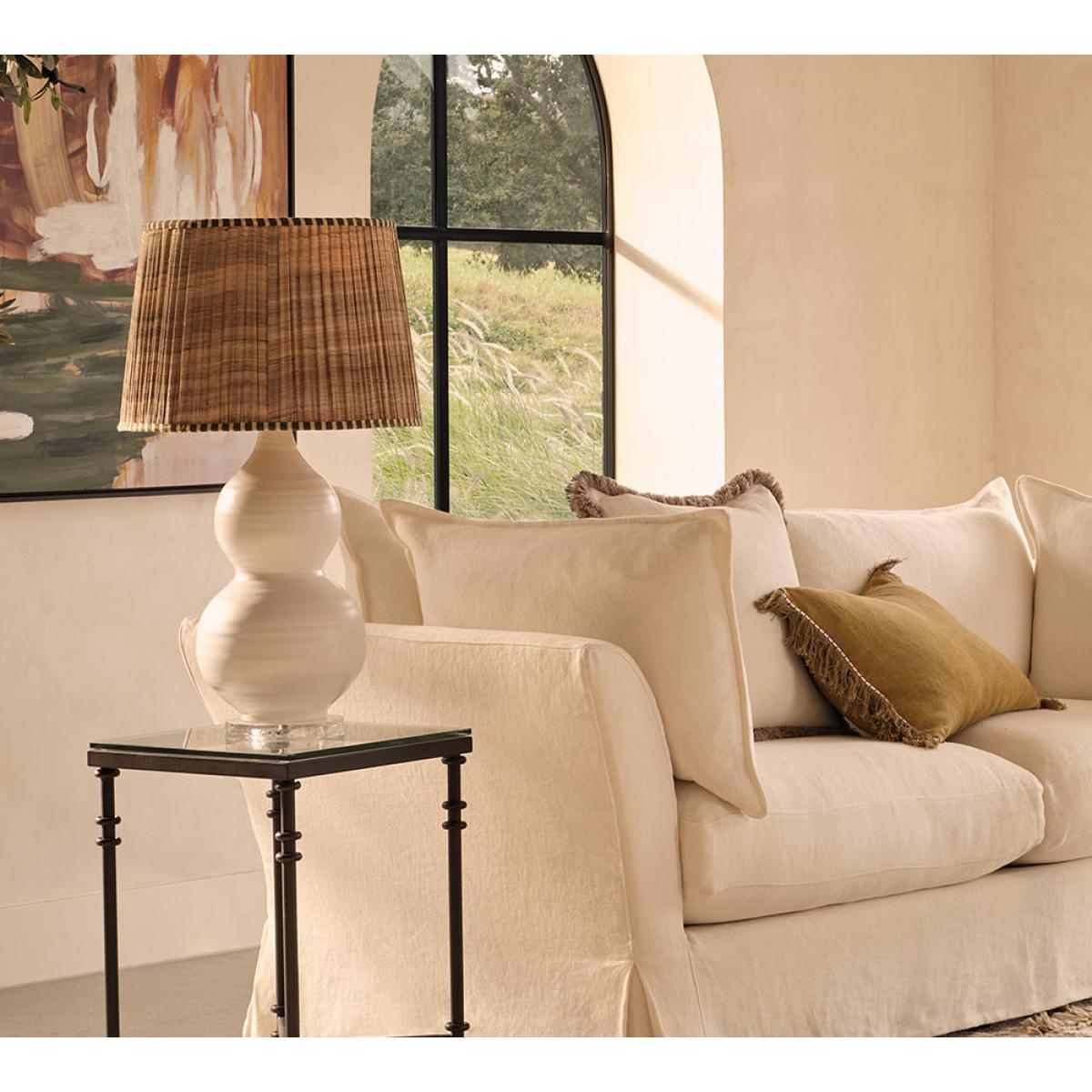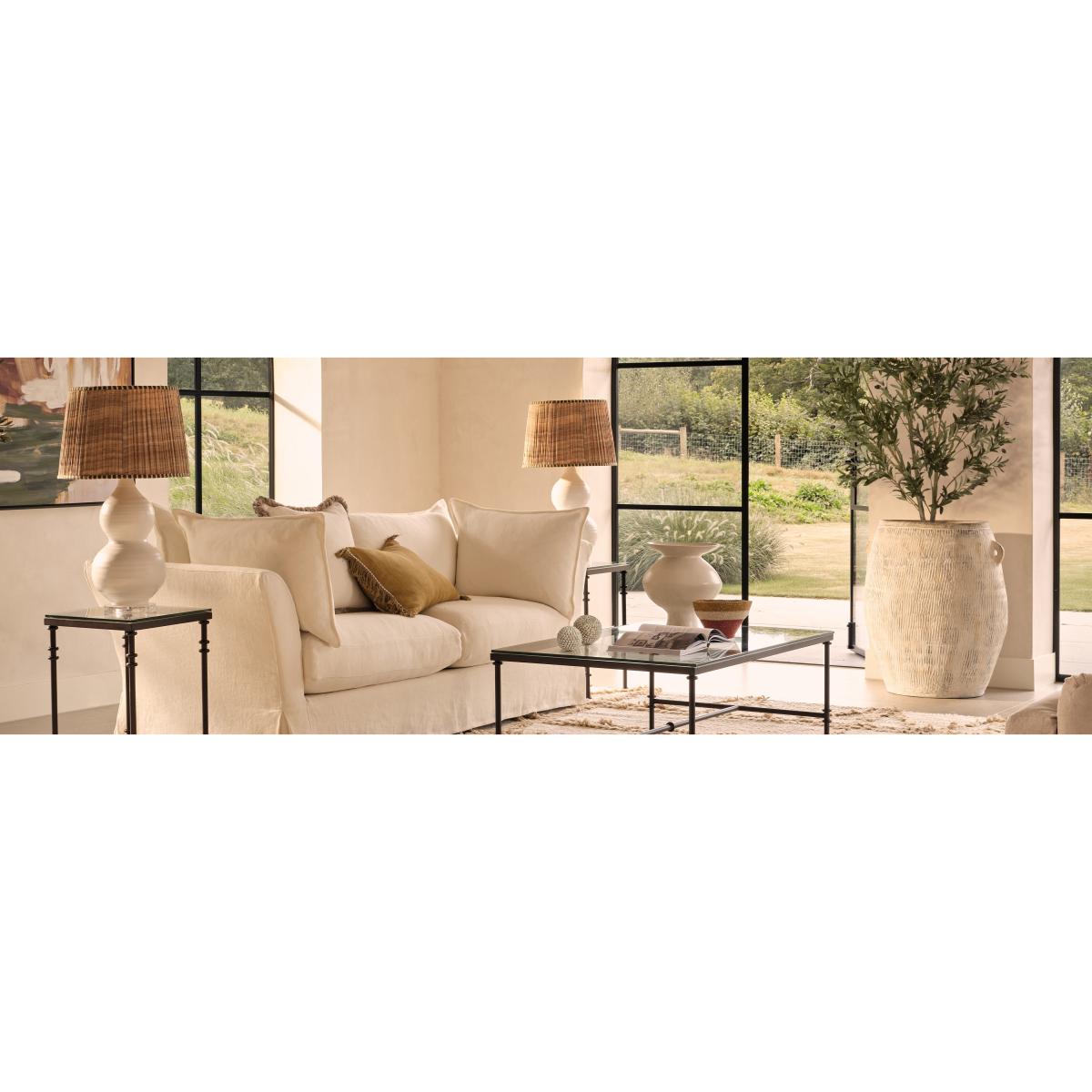 Amp up your style with our Olira Wireless Table Lamp, which is dimmable at the push of a button. This version comes with the Roa Cone Shade, and is also available with other shades designed specifically to match, or can be paired with any of our 16 and 25cm lampshades. Its metal base is wrapped with faux rattan for a natural-looking finish. With its rechargeable battery and cordless nature it can be moved around to wherever you please - including outdoors, though we advise you to bring it inside when you have finished using it. The lamp can also be used without a shade.
