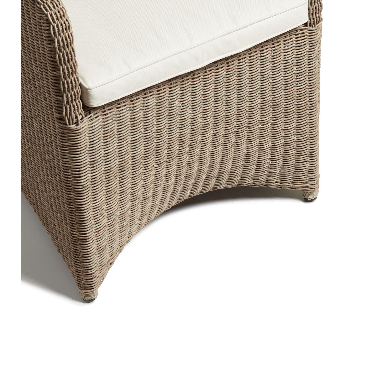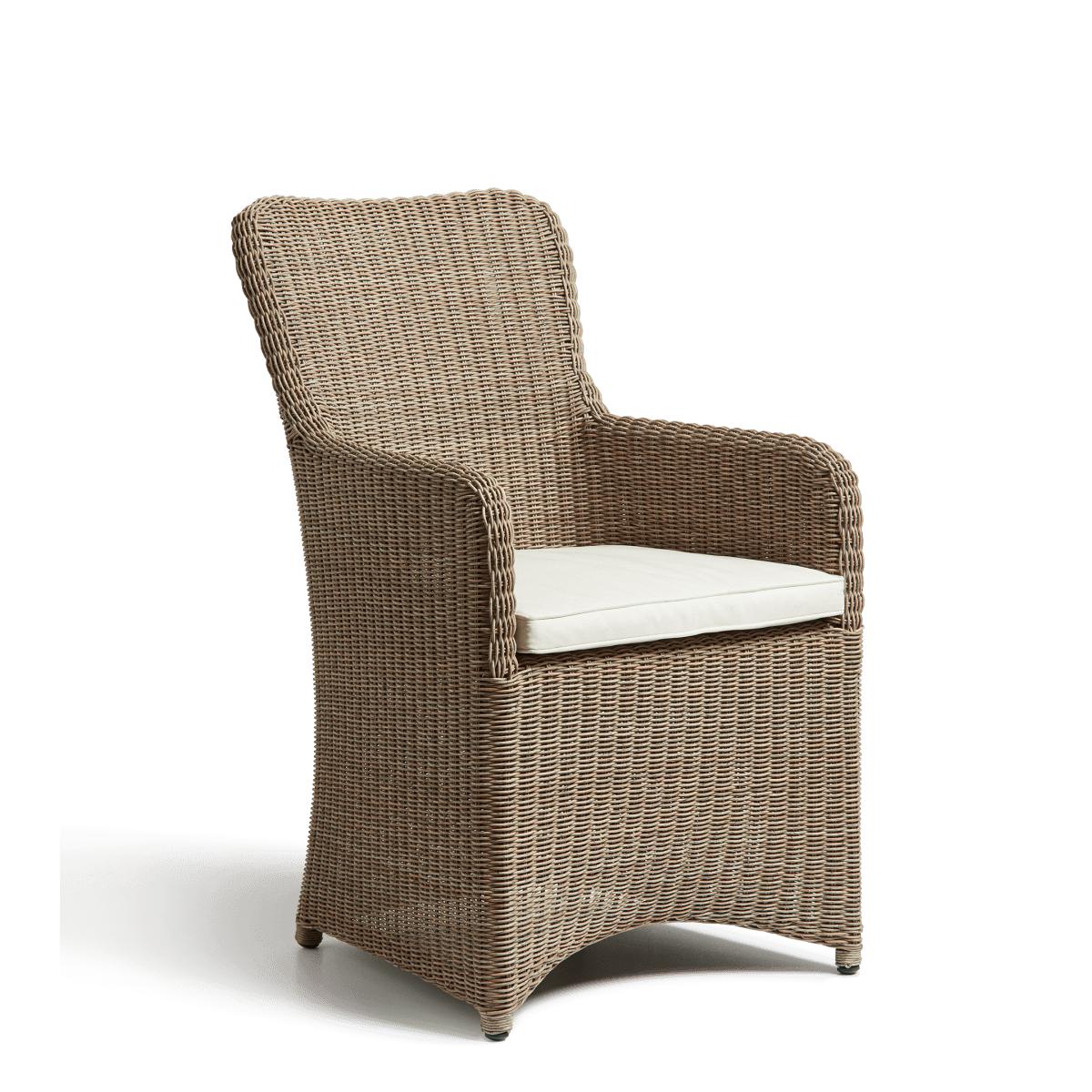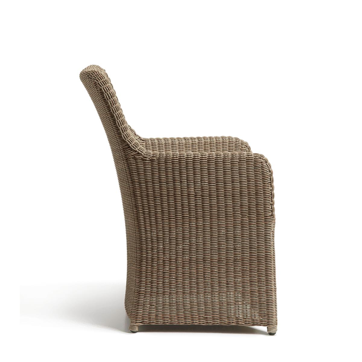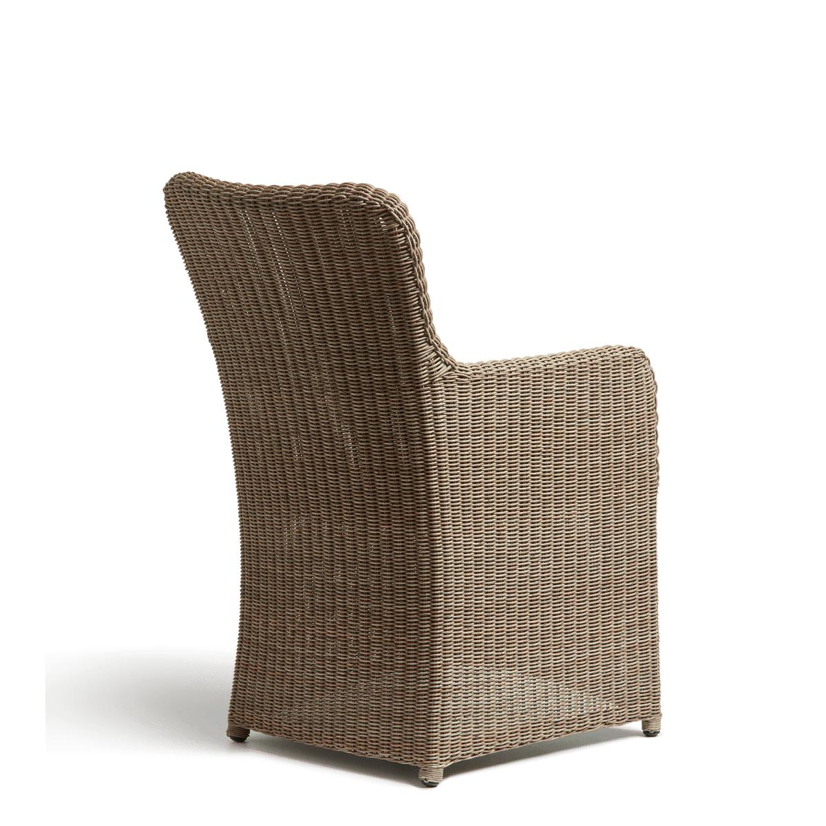 The Olmsted is handwoven around an aluminium frame from a synthetic rattan that looks just like the real thing – but with added weather-resistant benefits. It’s the armchair’s ergonomically designed backrest – slightly curved for comfort – that means you can spend hours at the table chatting with family and friends.