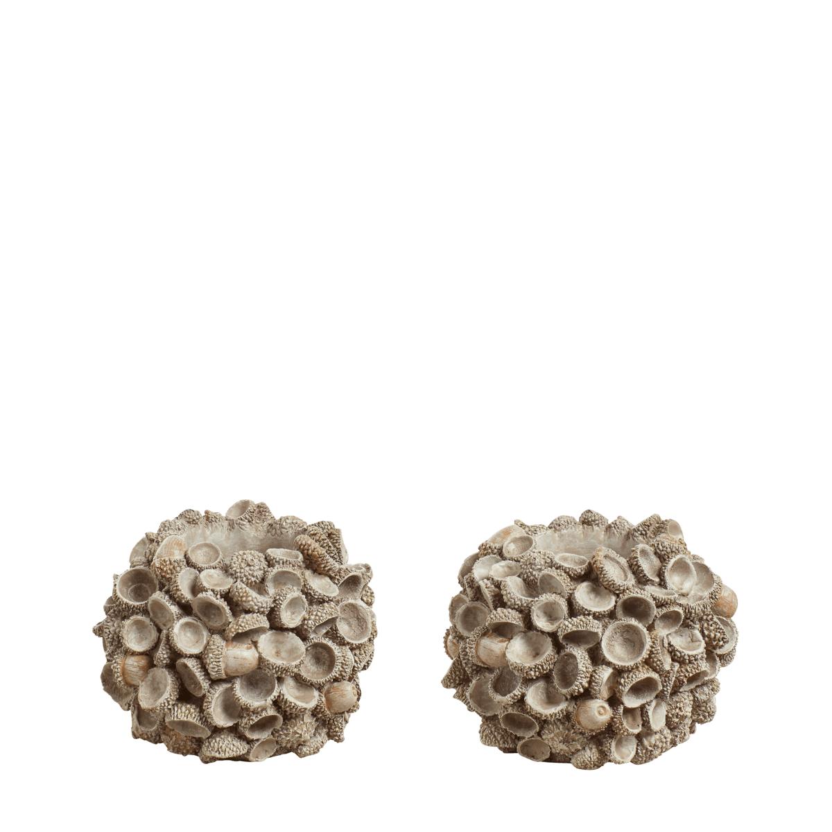 OKA, Pair of Ivenack Acorn Candle Holders - Natural, Candle Holders, Resin
