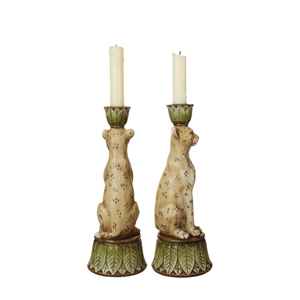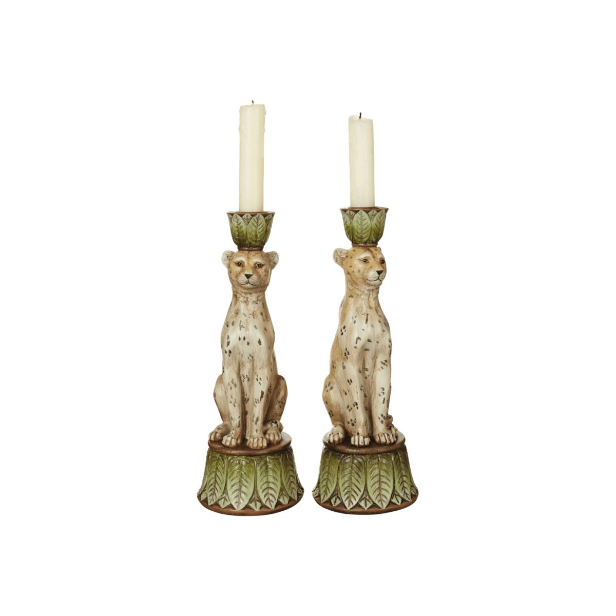 OKA, Pair of Lakadema Leopard Candle Holders - Multi, Candle Holders, Resin