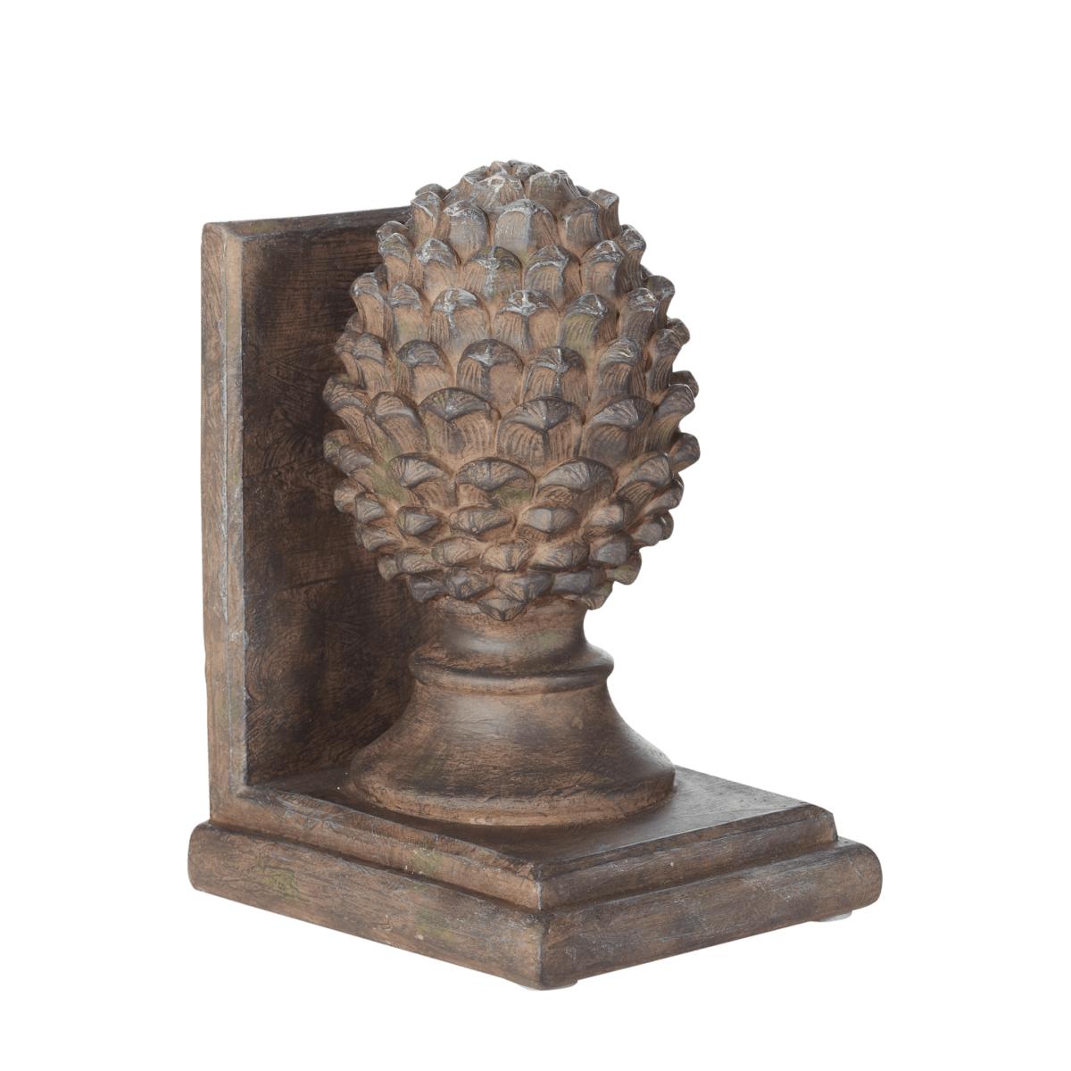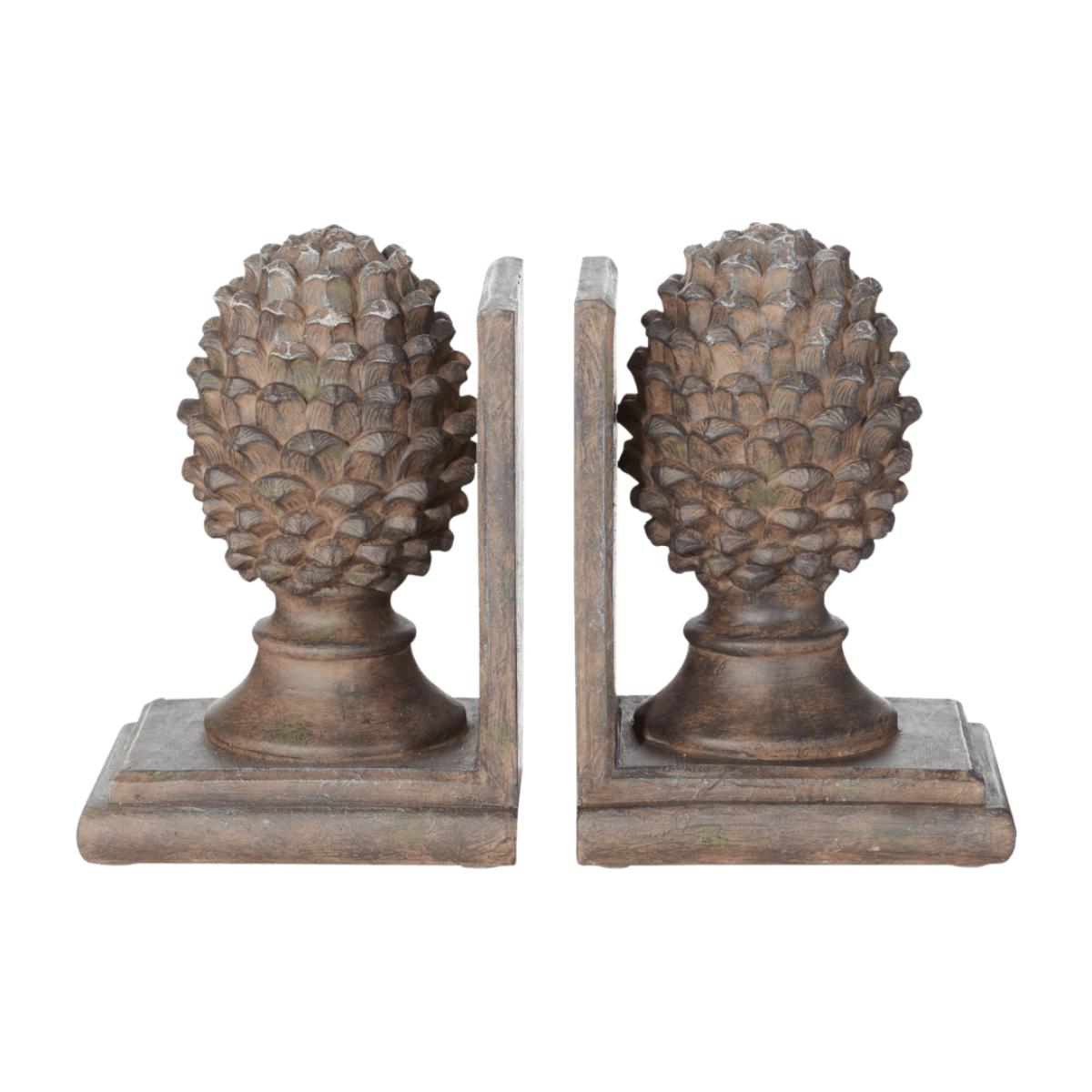 A pair of bookends resembling pine cones, made from solid resin with a realistic antiqued metal finish.