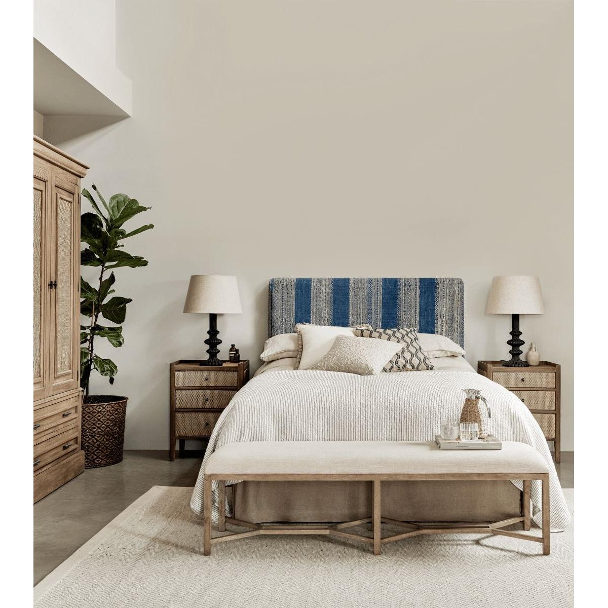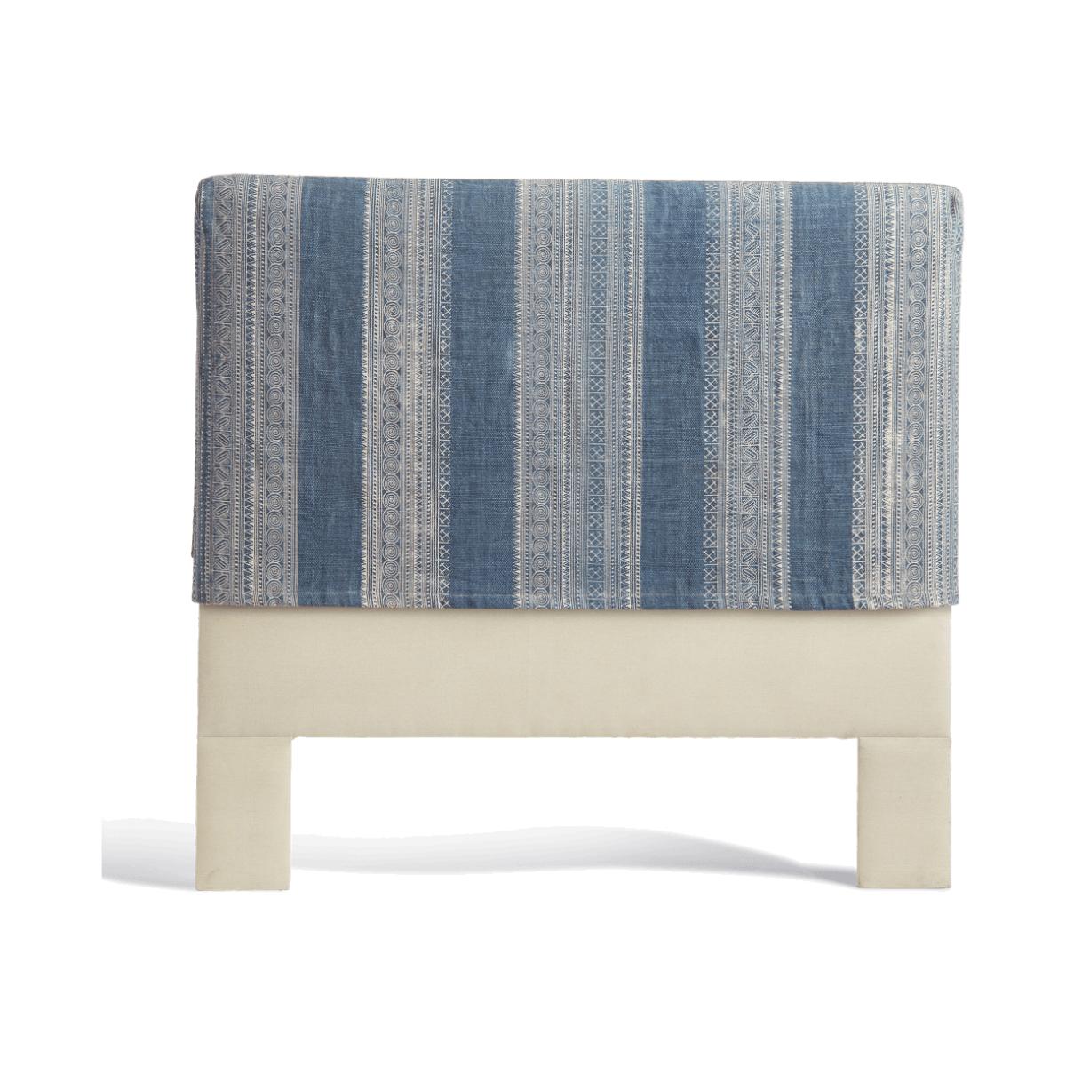 The latest design in our collection of loose headboard covers, Palayam might look familiar – in fact, the pattern made its OKA debut on one of our rugs before being translated into this new form. Blending the best of classic and decorative patterns, chunky blue stripes and fine geometric motifs sit side by side in this modern textile. Screen-printed by hand onto a cotton dhurrie before being washed for a faded appearance, the manual process used to create the textile lends each piece an individual finish. Tie fastenings on the back make it simple to attach to a headboard.