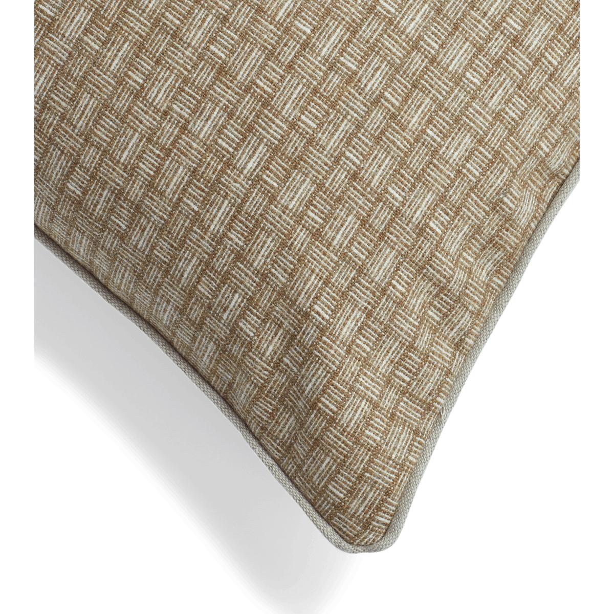 A tale of two sides, the front of our Paleo Cushion Cover is woven in the UK from top quality New Zealand wool. The basketweave creates the crosshatch-style pattern in contrasting cream and mustard thread. The reverse side is composed of a cotton and linen blend.