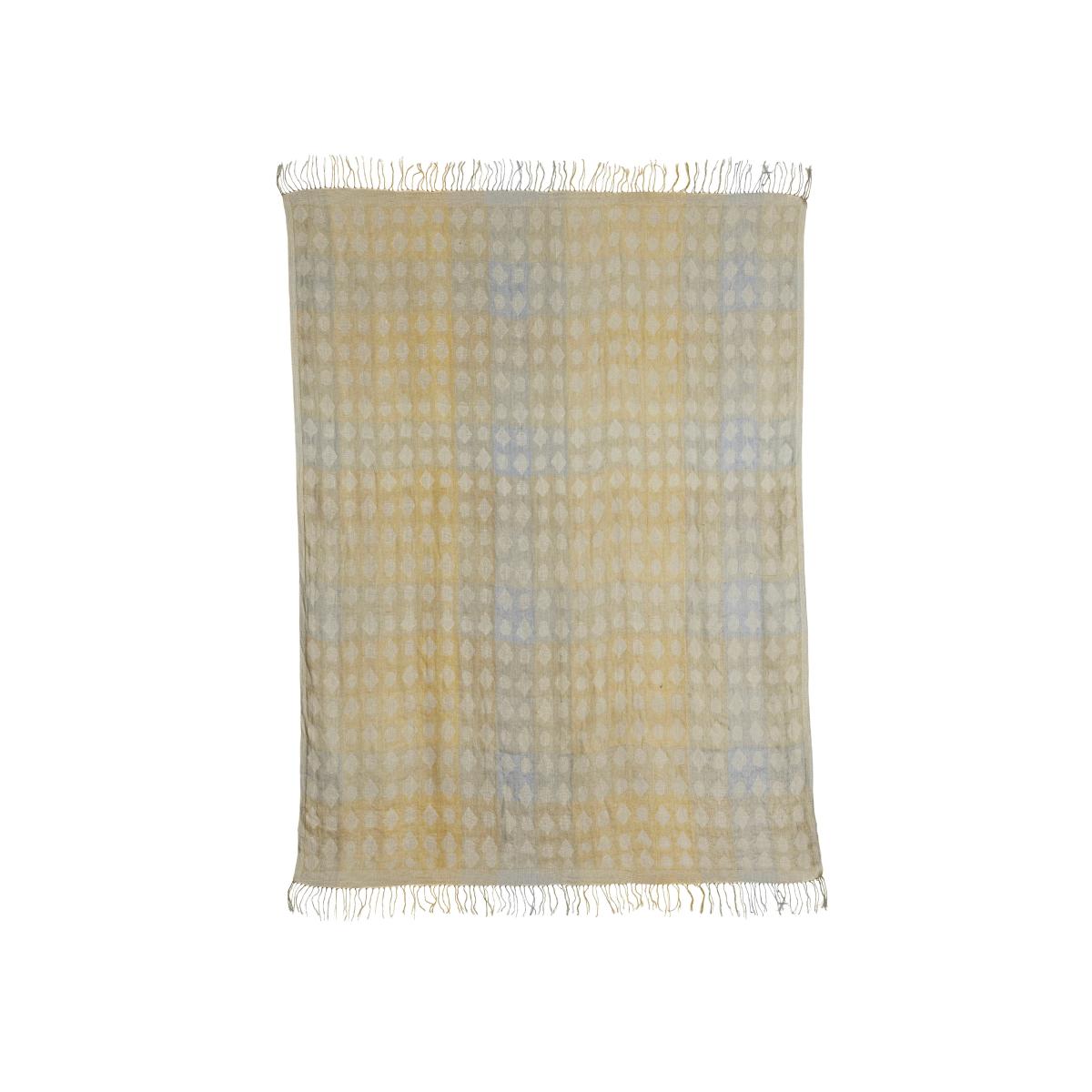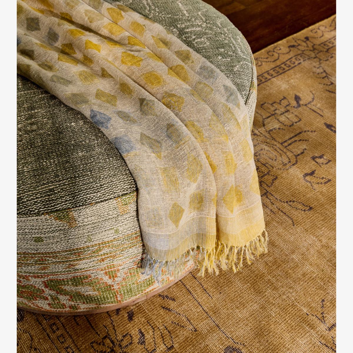 The diamond-patterned Pannar Throw is handwoven on a handloom from linen and silk for an extra soft and fine feel. Its yellow and neutral tones will vary from piece to piece due to its artisanal crafting process and natural materials, meaning that each piece is truly unique.