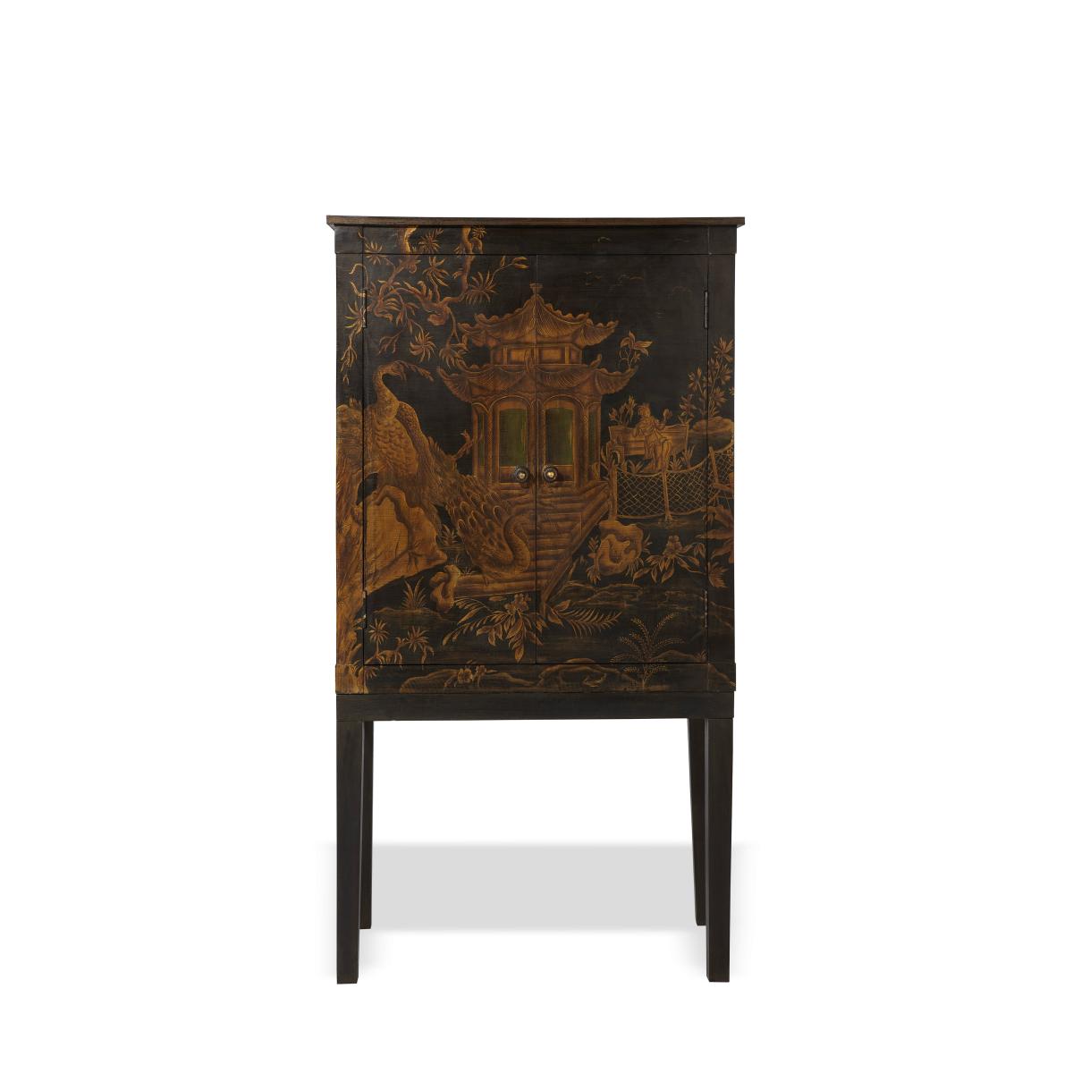The perfect solution to the perennial problem of where to hide the TV and electrical equipment in an otherwise beautifully designed room. The Chinoiserie design extends around three sides of the cabinet, and also inside the doors (so it looks just as good when open). An exquisite piece that will be destined to become an heirloom.