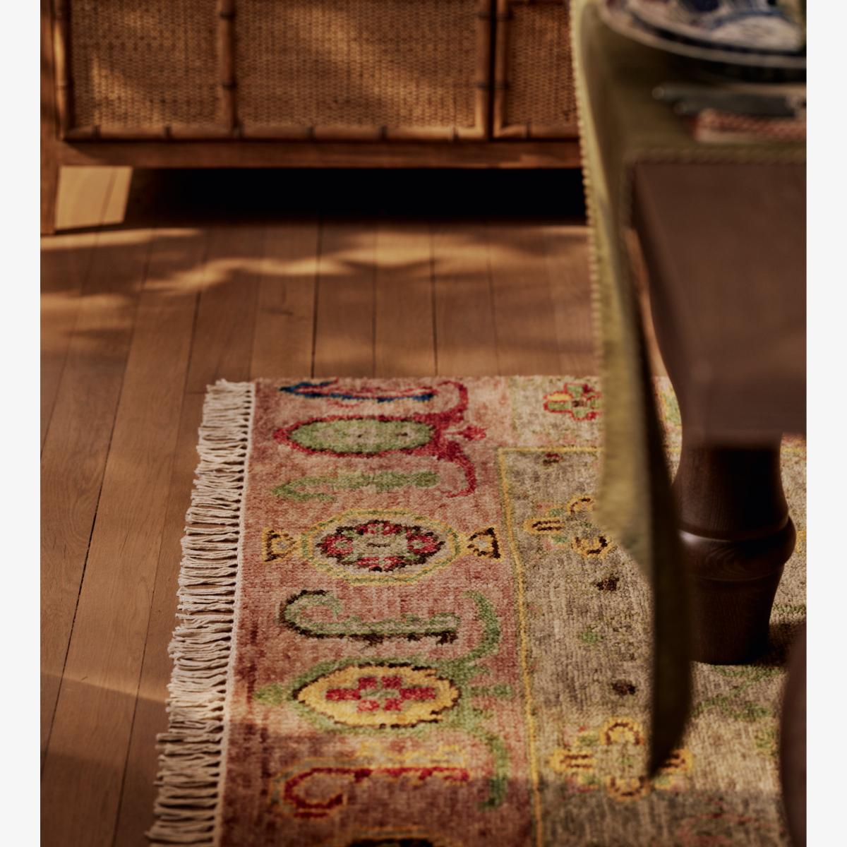 Hand-knotted from the softest wool by skilled artisans using age-old techniques, our Pembe Rug adds texture and warmth to any home. It features a classic Oriental design with intricate floral motifs in rich, earthy tones.