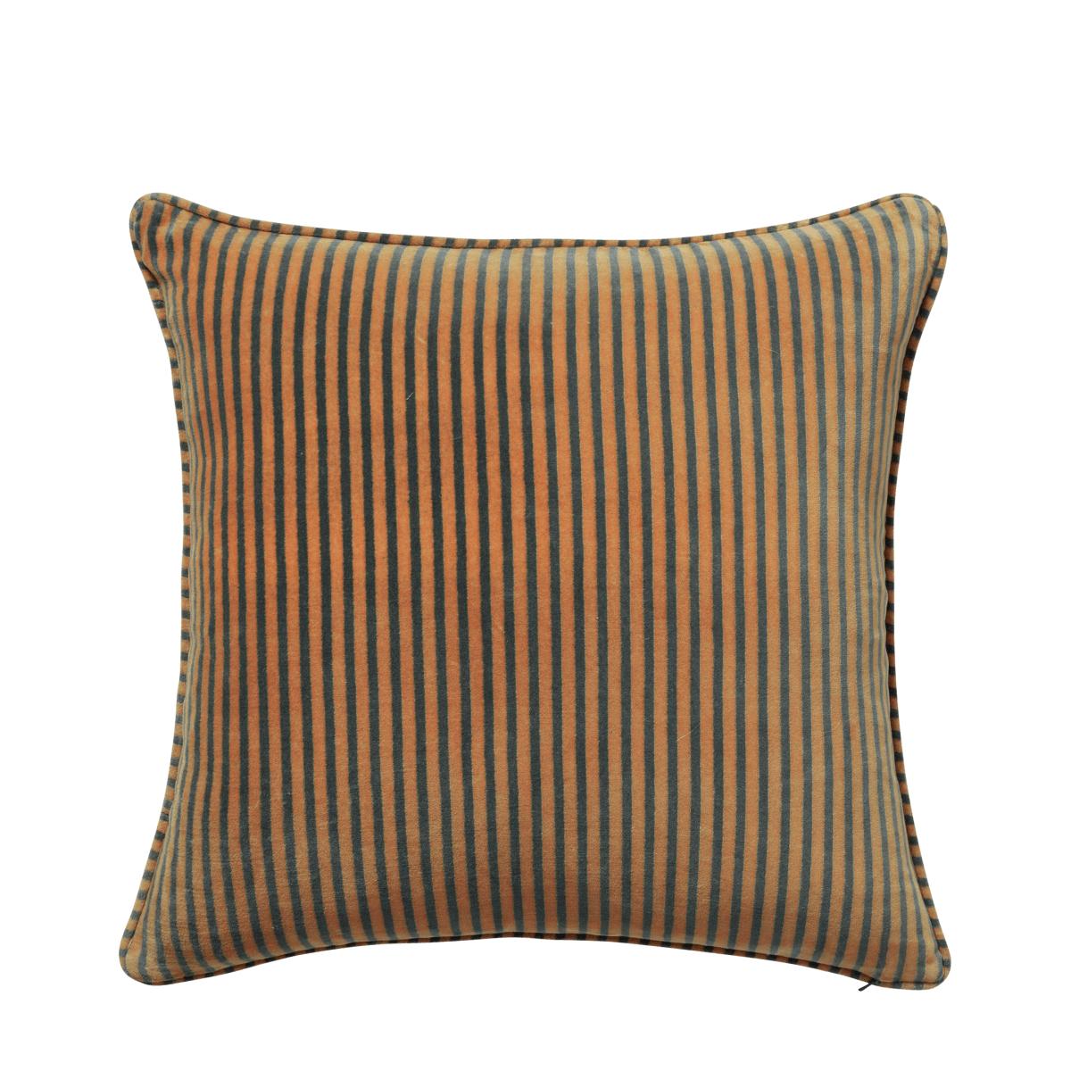 Deciding between a velvet or patterned cushion cover? Why not opt for one that is a combination of the two, a piece that captures the same opulence and interest. This black and yellow design also allows you to create a number of cushion arrangements as it has a different pattern on each side: one is decorated with a floral print, the other is striped.