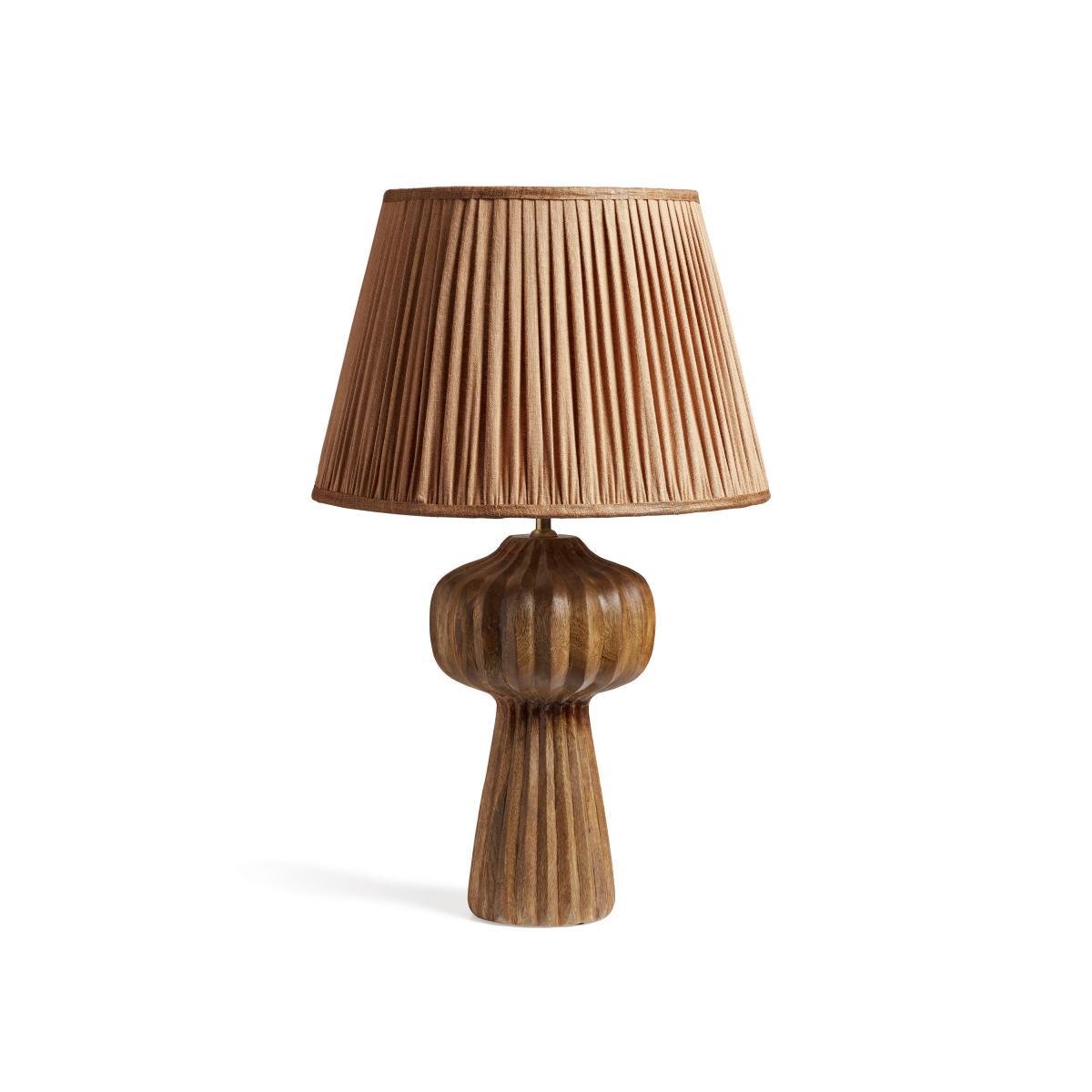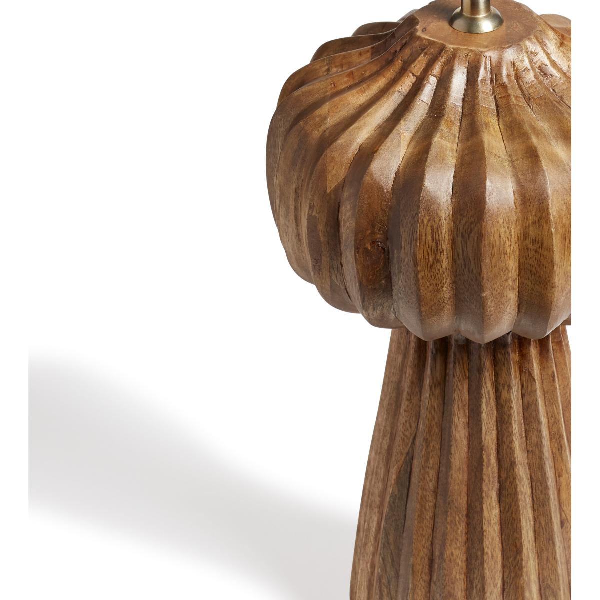 The Picotee Table Lamp Base is crafted by turning and carving mango wood into its ribbed and fluted form. Its shape will cast pleasing light and shadows when the lamp is switched on. Due to the natural materials used, each piece will have individual characteristics.