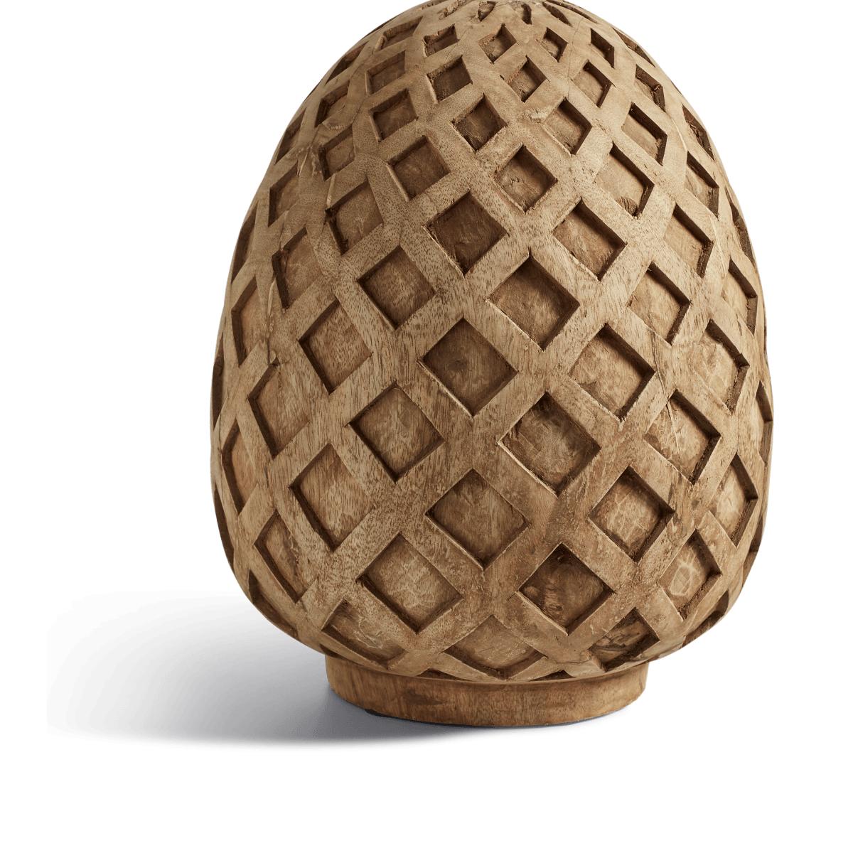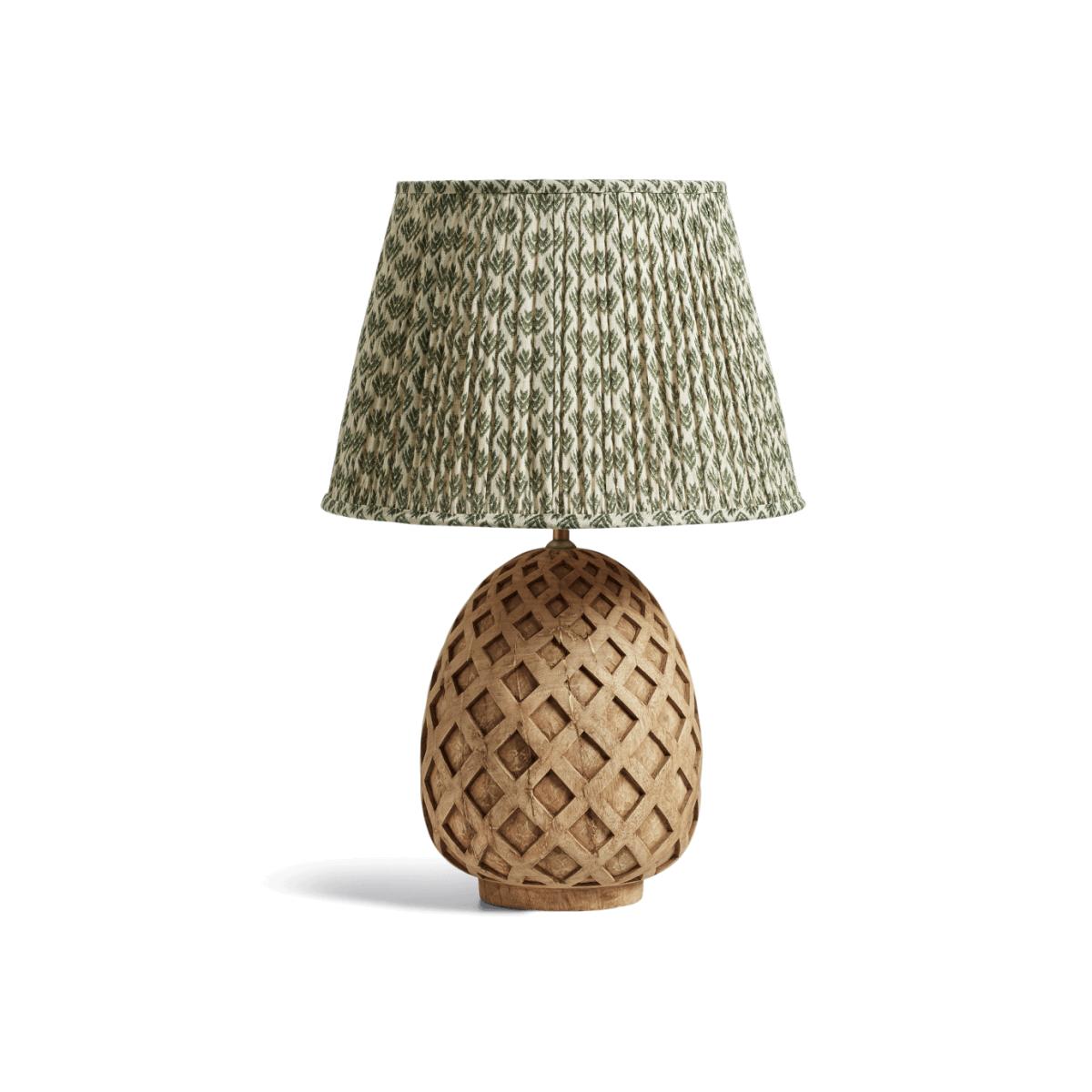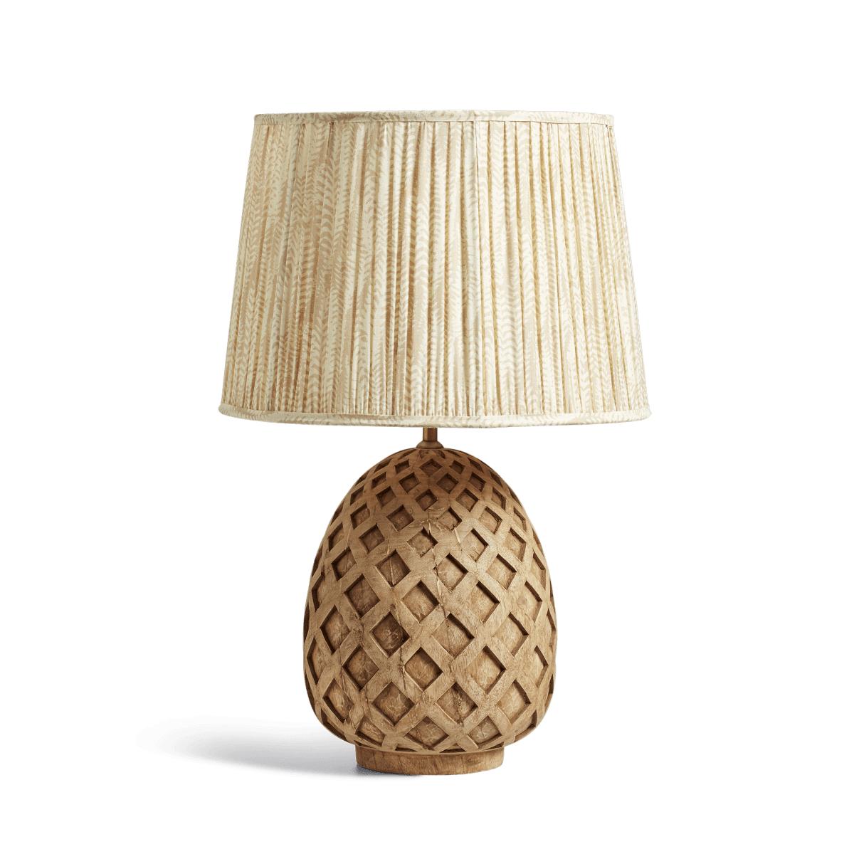 Our Pinya Table Lamp is a beautiful example of the wood carving craft. Made from mango wood, each diamond shape is carved into the base in expanding size as the oval form widens. It is a wonderful way to create a statement with your lighting, whether you top it with a plain or patterned shade. Due to the artisanal techniques used, each piece will have individual characteristics that add to their charm.