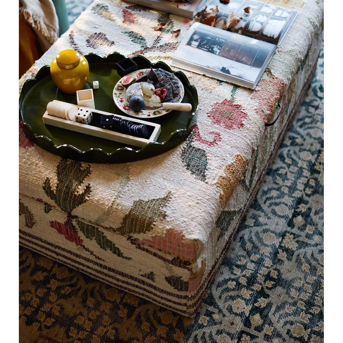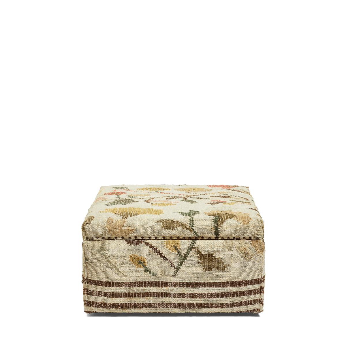 OKA, Pomona Upholstered Ottoman - Blossom, Ottomans, Brass/Jute/Mango Wood, Floral