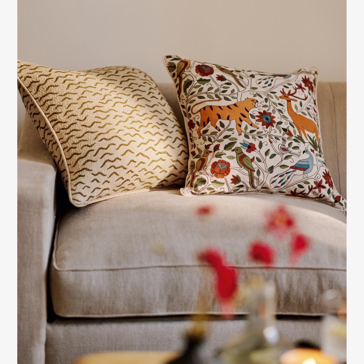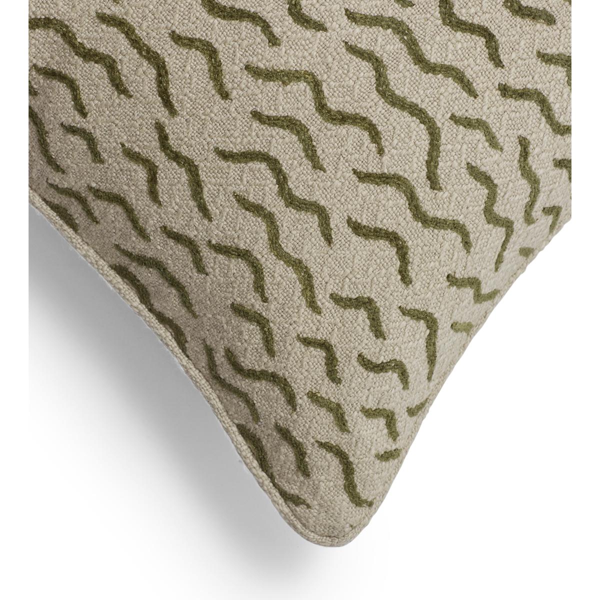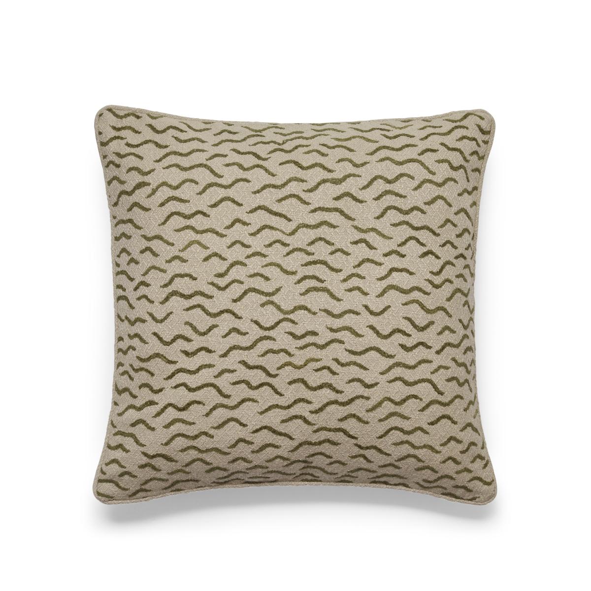 Made from a textural fabric in a stone and lichen colourway, our square Potala Cushion Cover is inspired by Tibetan rugs, while it features a distinctive wiggle pattern on the front that’s embroidered with chenille yarn. The piping around the edges completes the look.