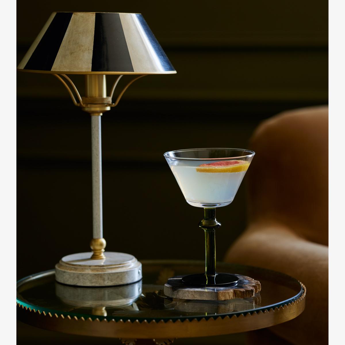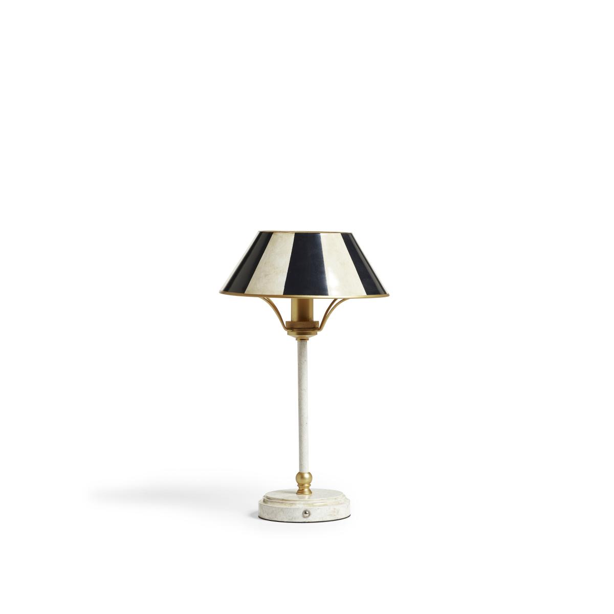 A wireless take on our much-loved Purdy Table Lamp, this updated design features the same vintage-style aesthetics, albeit without the need for a cord, meaning the design can be used anywhere – including in the garden. The distinctive metal shade features hand-painted blue-and-vellum stripes that take their inspiration from big-top circus tents, while brushed-brass edges with matching hardware complete the look.