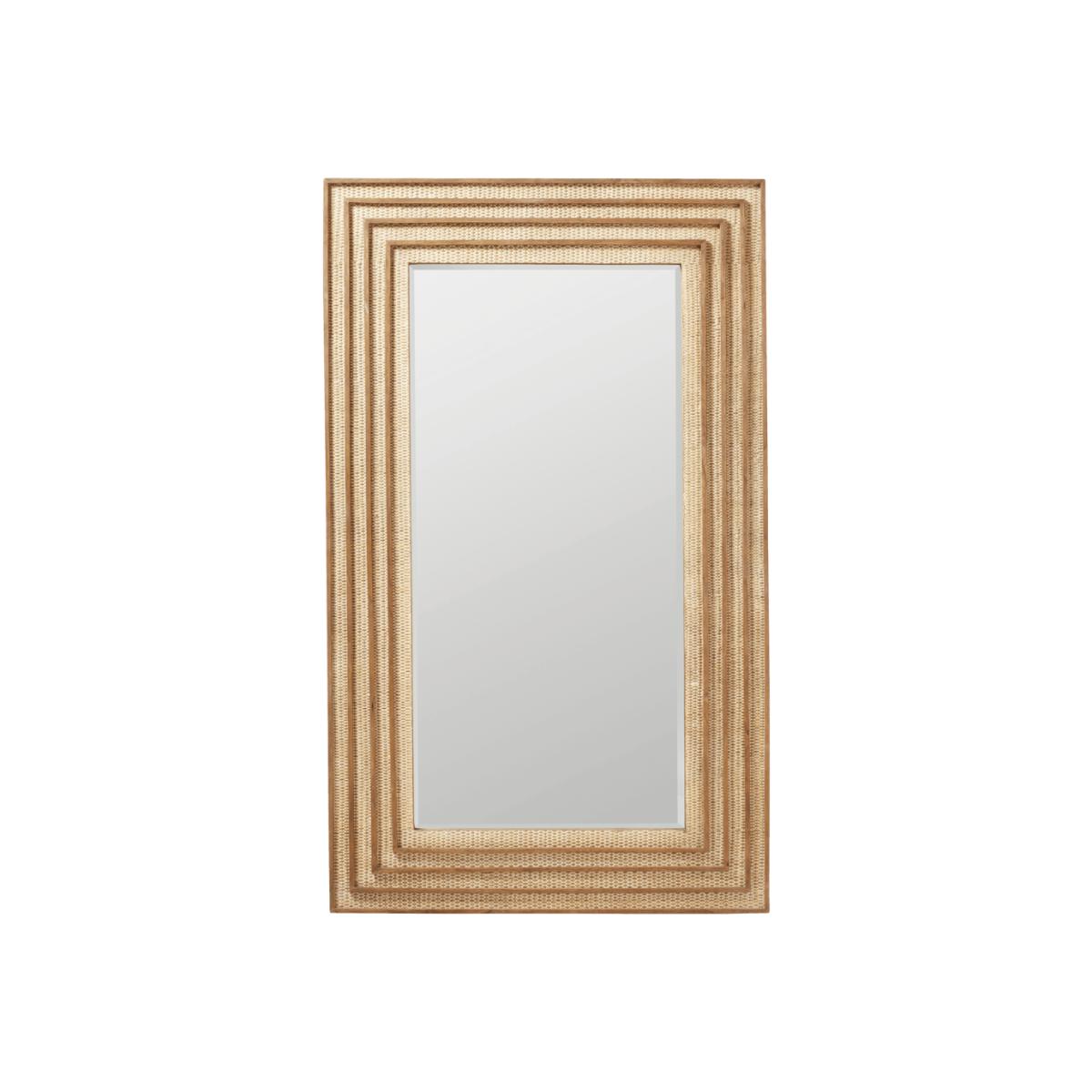 This mirror takes its name from the Raphia palm tree. Native to Madagascar, its fibres are carefully woven to create textiles and natural materials - such as the rattan you see on this piece. This textured design features a raised border of concentric rectangles, which gives it a unique silhouette, whilst also making it the ideal choice for creating a dramatic focal point on the wall.