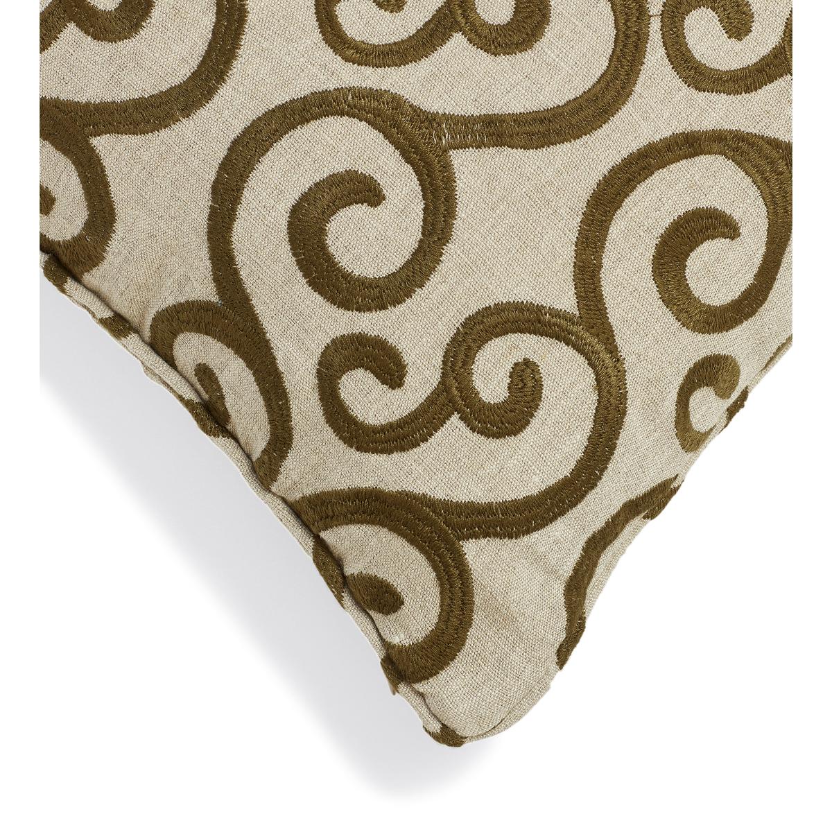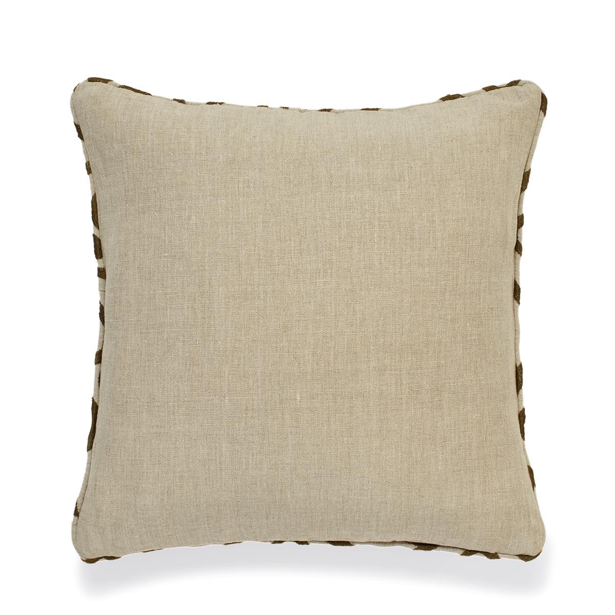 The swirling embroidery of our Ria Cushion Cover lent it its name, one of Indian origin meaning small river. The Spruce green thread is embroidered onto a handwoven natural linen base, matched by the same pattern on its piping.
