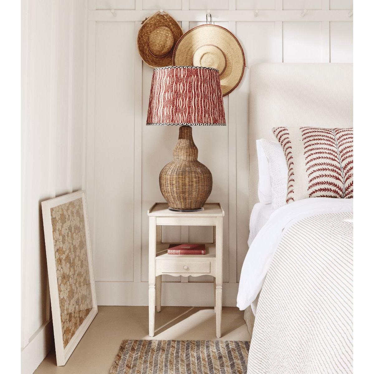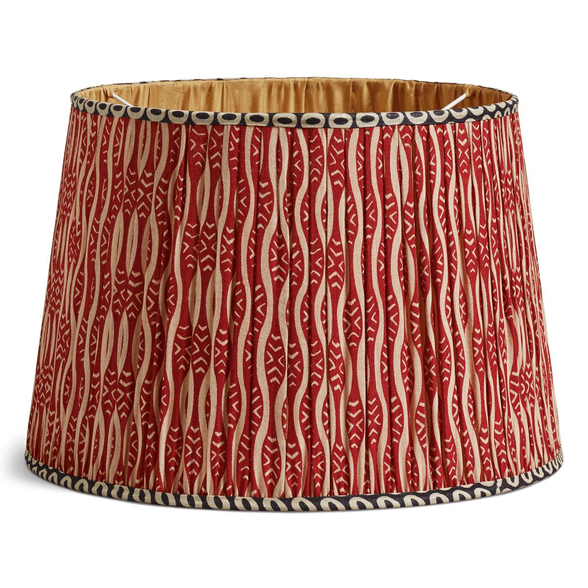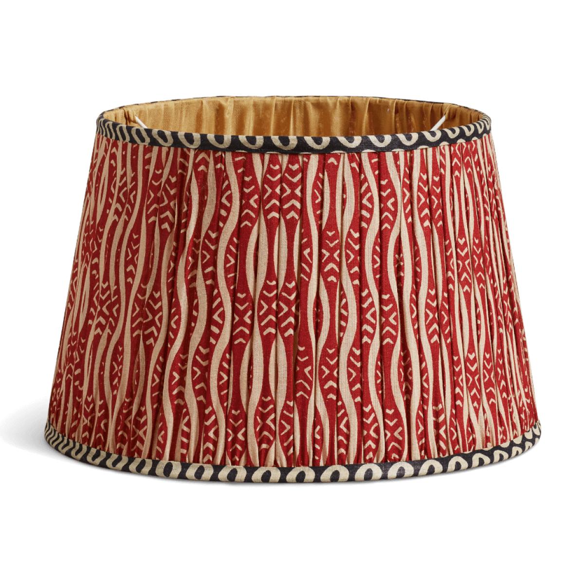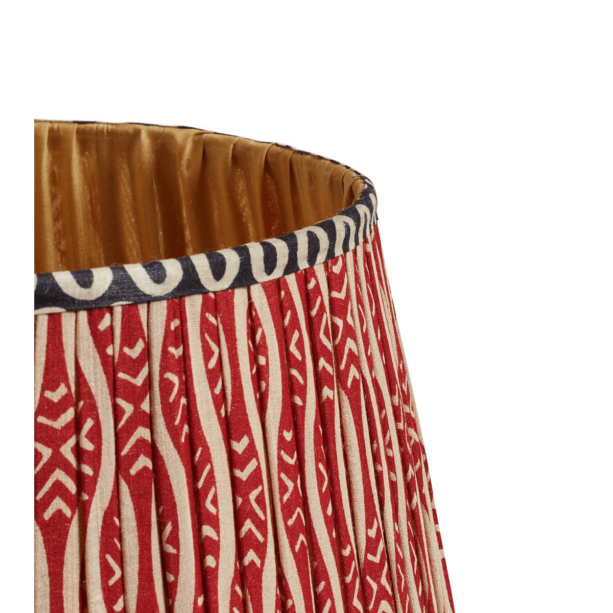 Match your sofas to your lamps with our pleated shades featuring our Roa Cushion Cover Print. The red and black patterns are featured on the body of the shade and in the decorative piping, a contrast that lends a dramatic edge. The shade's lining helps to create a warm glow.