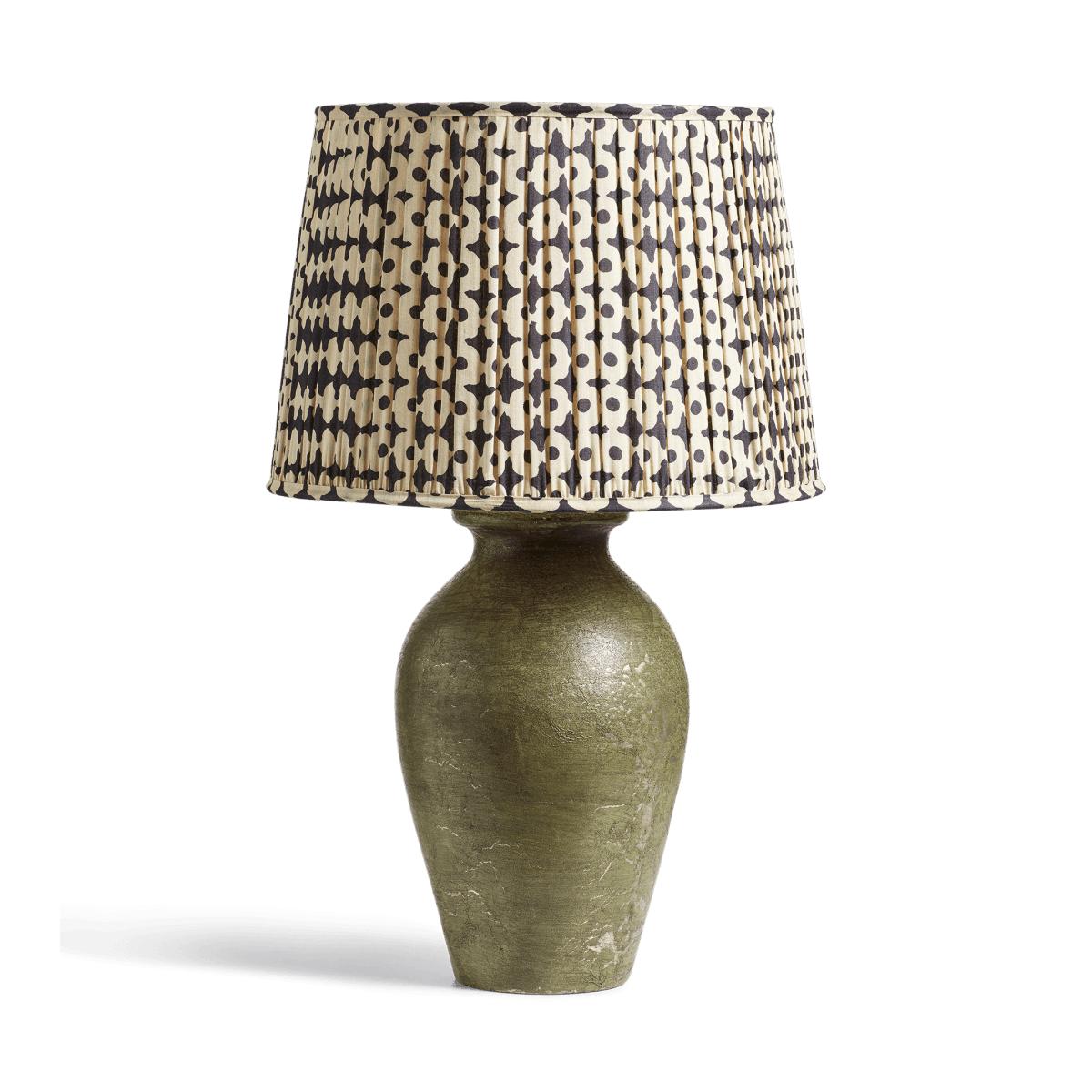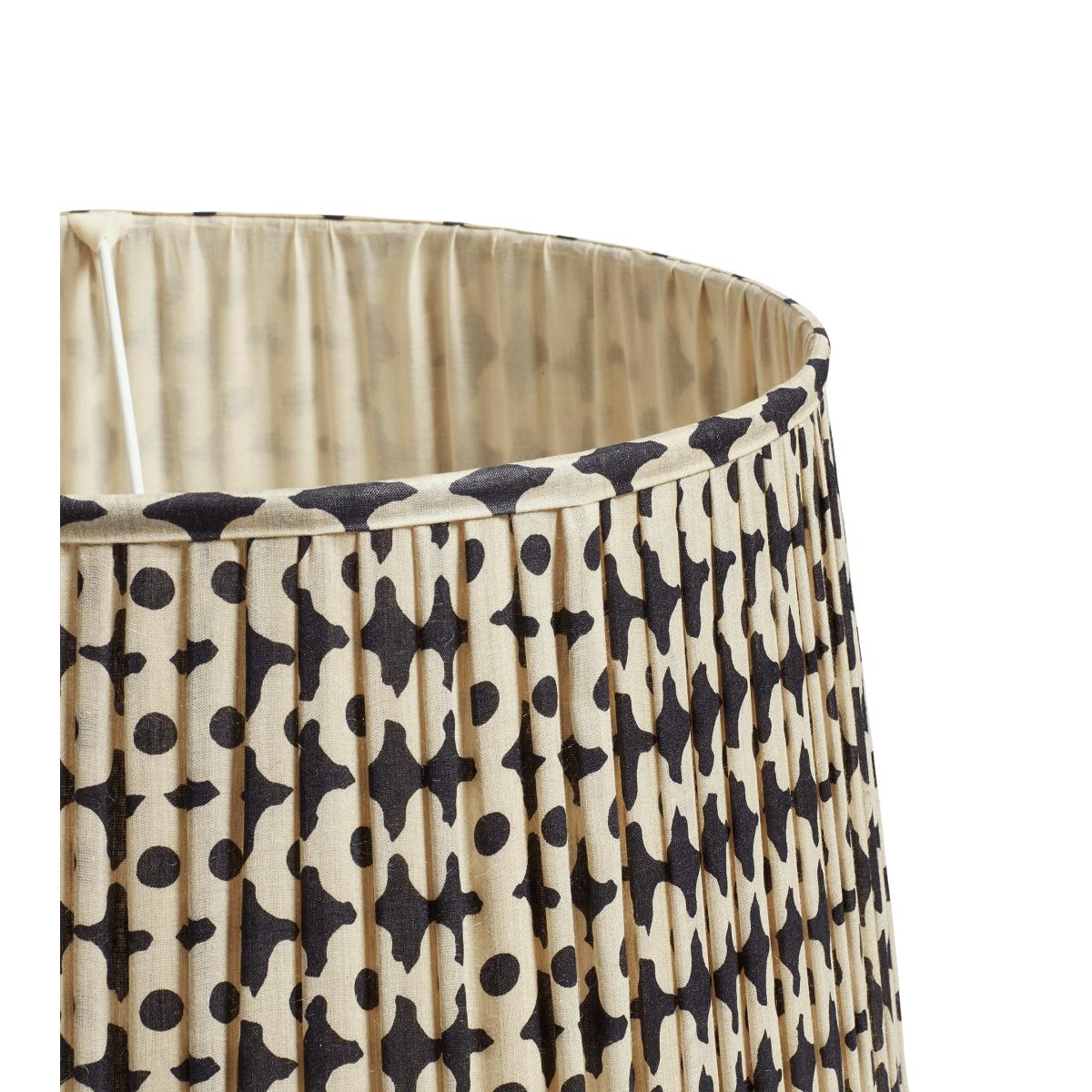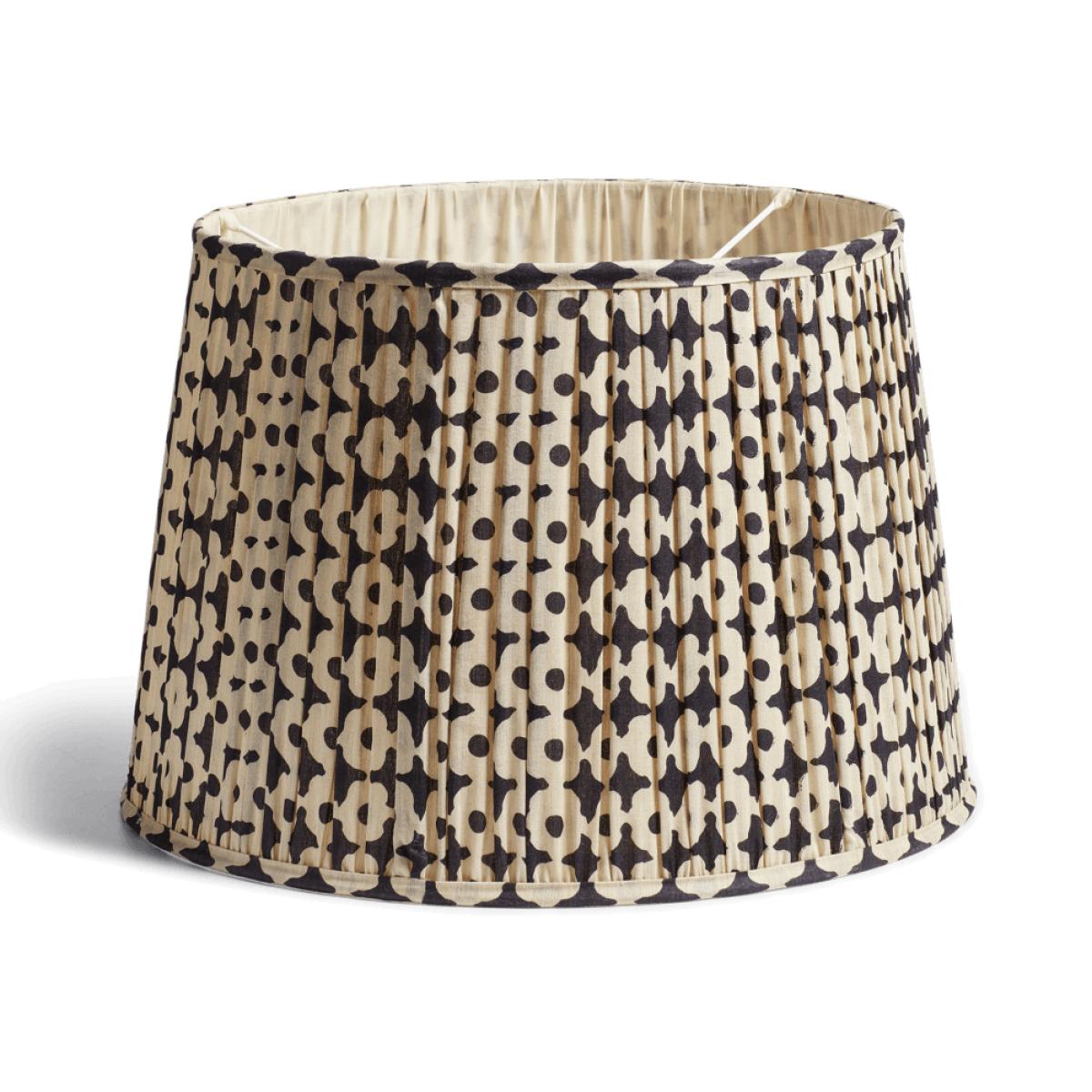 The Dark Blue poppy-inspired pattern of our Romneya Lampshade will sit prettily in many an interior. The printed screen-silk is gathered around a handmade metal frame for a pleated appearance. This is the larger of two iterations.