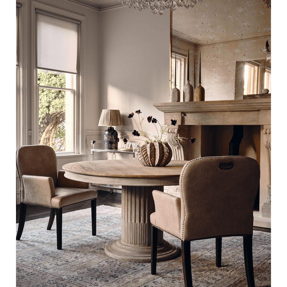 Taking its design cues from Ancient Rome, the Kalivia is characterised by its pedestal base – which has been moulded to resemble a Corinthian column – and round top, beautifully crafted from resin with a wood-grain finish. Not only is this dining table incredibly smart, but it’s also very tactile, and incredibly versatile: the resin coating gives it weather resistance which results in a piece that can be used both indoors and outdoors. A striking piece fit for a Romanesque banquet.