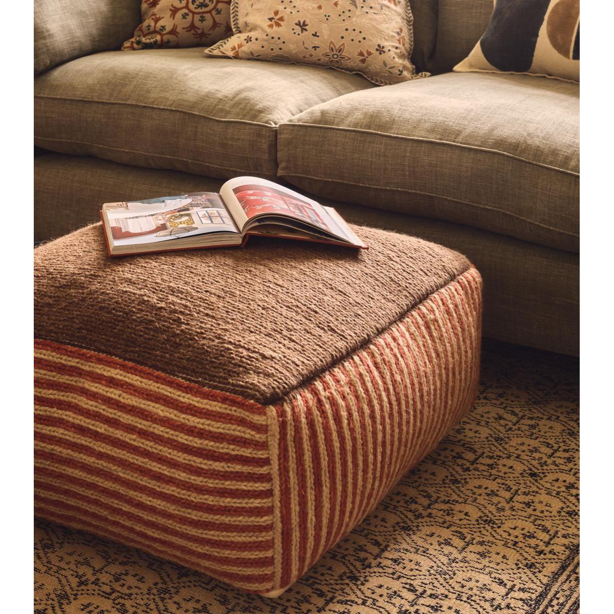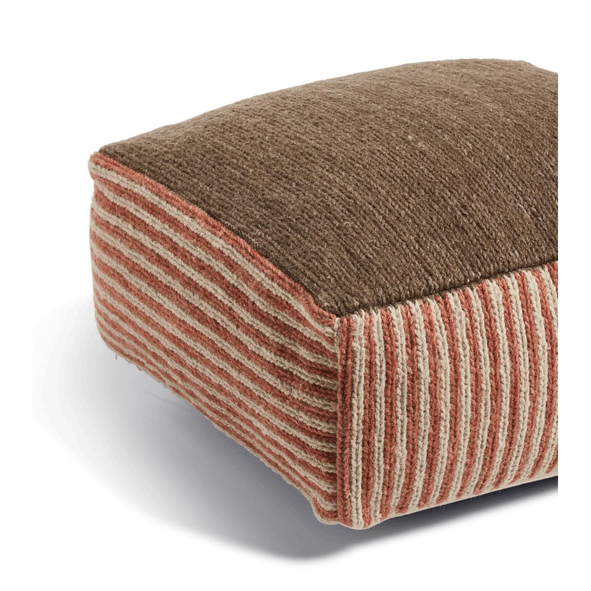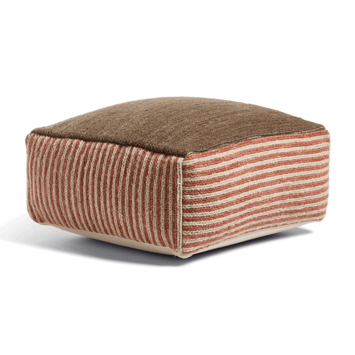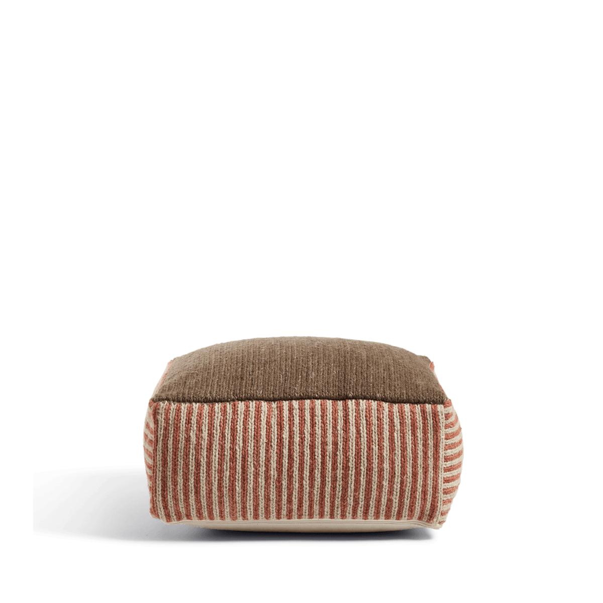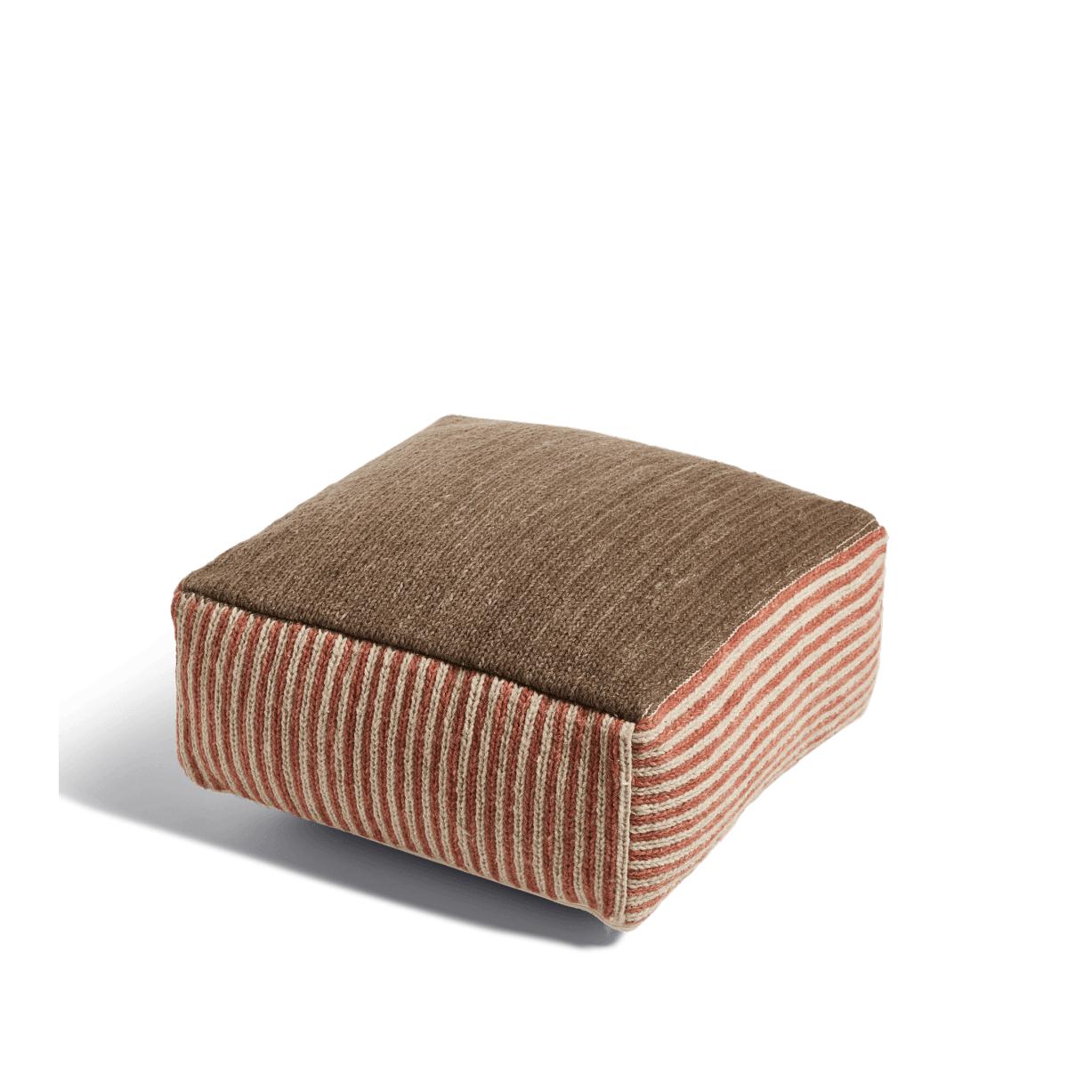 Made to match our rug of the same name, the Rubia Floor Cushion is handwoven with a soumak tapestry technique. This is a flat weave involving tightly wrapping weft (horizontal) threads around the warp (vertical) threads for an incredibly strong and thick finish. The fabric is washed for an antique effect and bobbles formed in the weaving process are individually sheared for a smoother finish, then sewn on all sides to form a pouf, which is filled and beaten to take its shape. This artisanal process will result in each piece having individual characteristics that add to its charm.