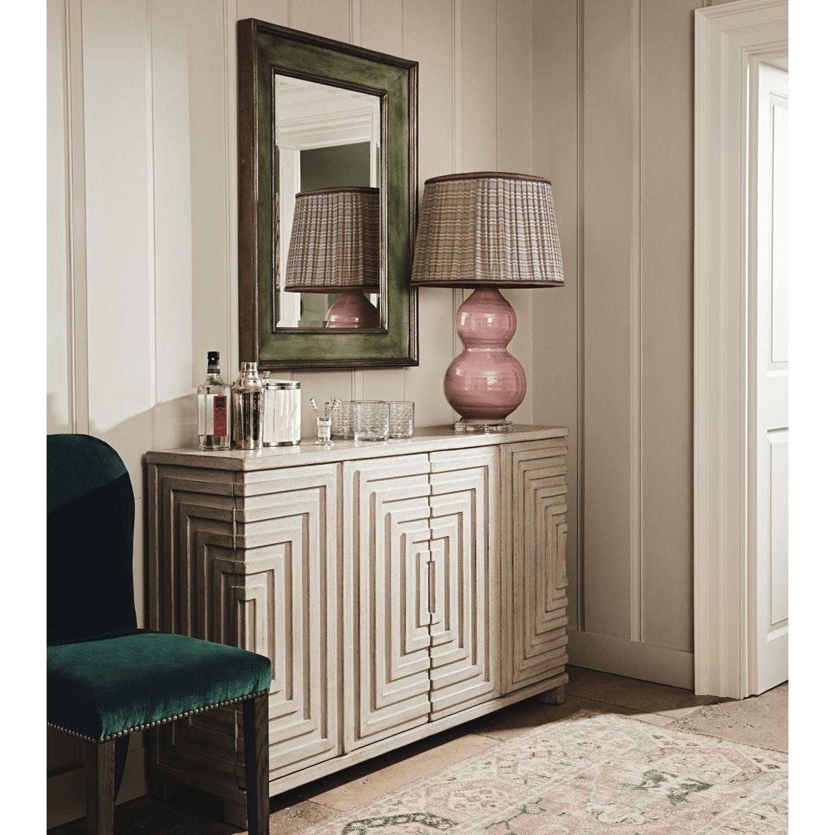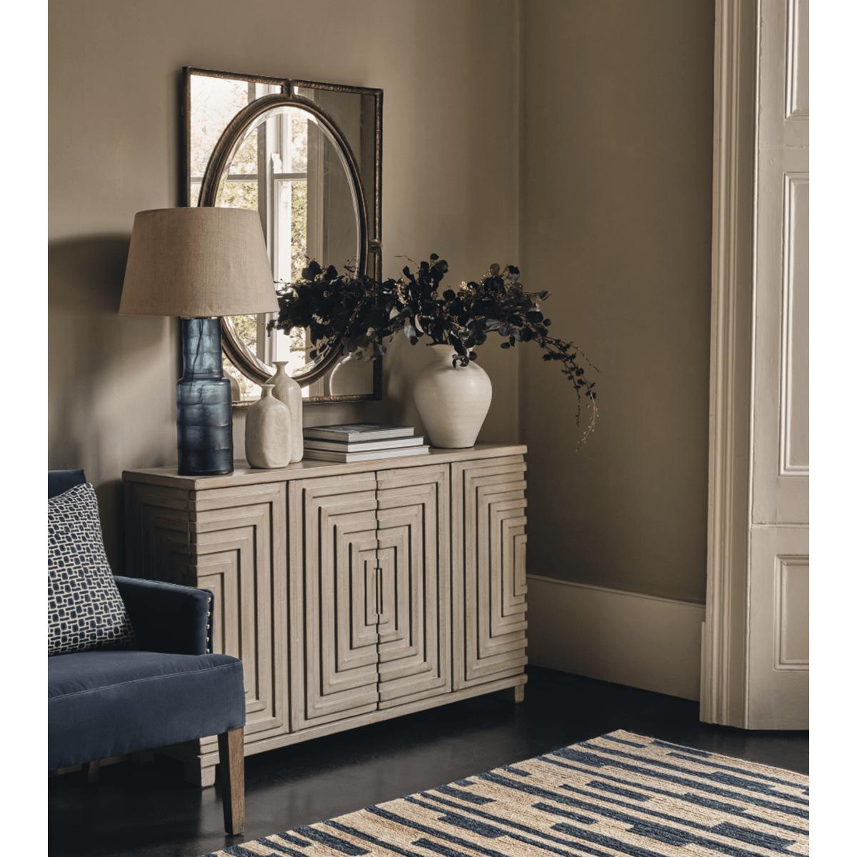 I’m keen on this washed-grey Rubinne sideboard for its softly aged finish and graphic, stepped-panel doors that add texture without overwhelming a room. It sits equally well in a relaxed coastal scheme, a modern farmhouse setting or a pared-back Scandinavian interior, and its generous ply-lined cupboards make it ideal for stashing tableware, linen or media kit. Styling tip: keep the top simple - a low ceramic lamp, a couple of framed prints leaned behind it and a green plant to soften the geometric detail. Inside, use natural-weave baskets to corral smaller items and maintain that calm, curated feel.