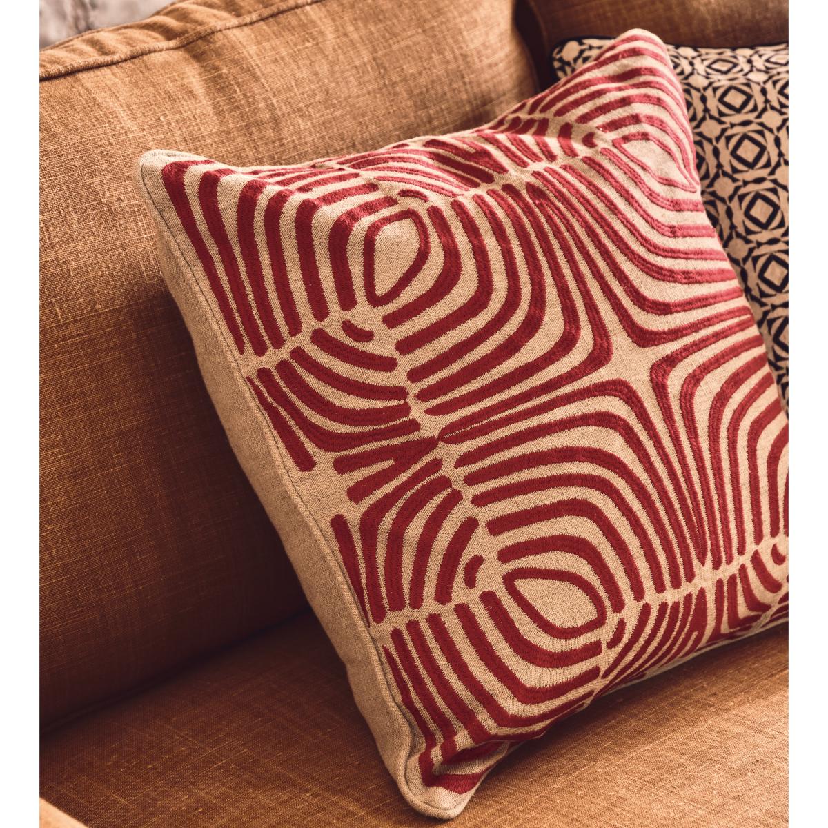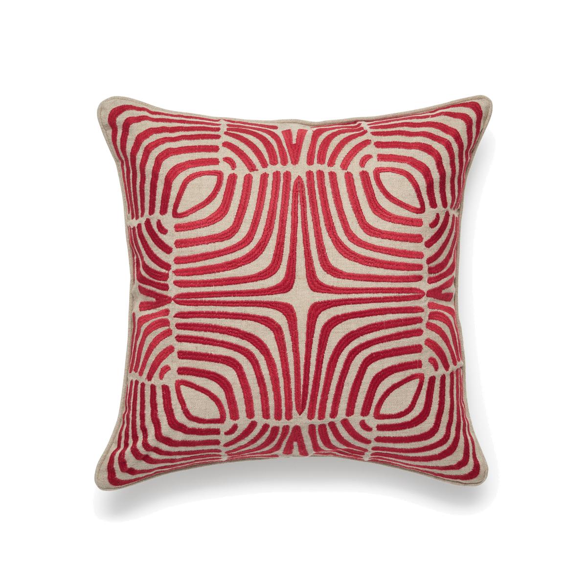 Our Salvador Cushion Cover is named after the famed artist for the illusionary quality of its pattern. The red design is machine-embroidered for precision onto a linen base. It's finished with plain piping around its border.