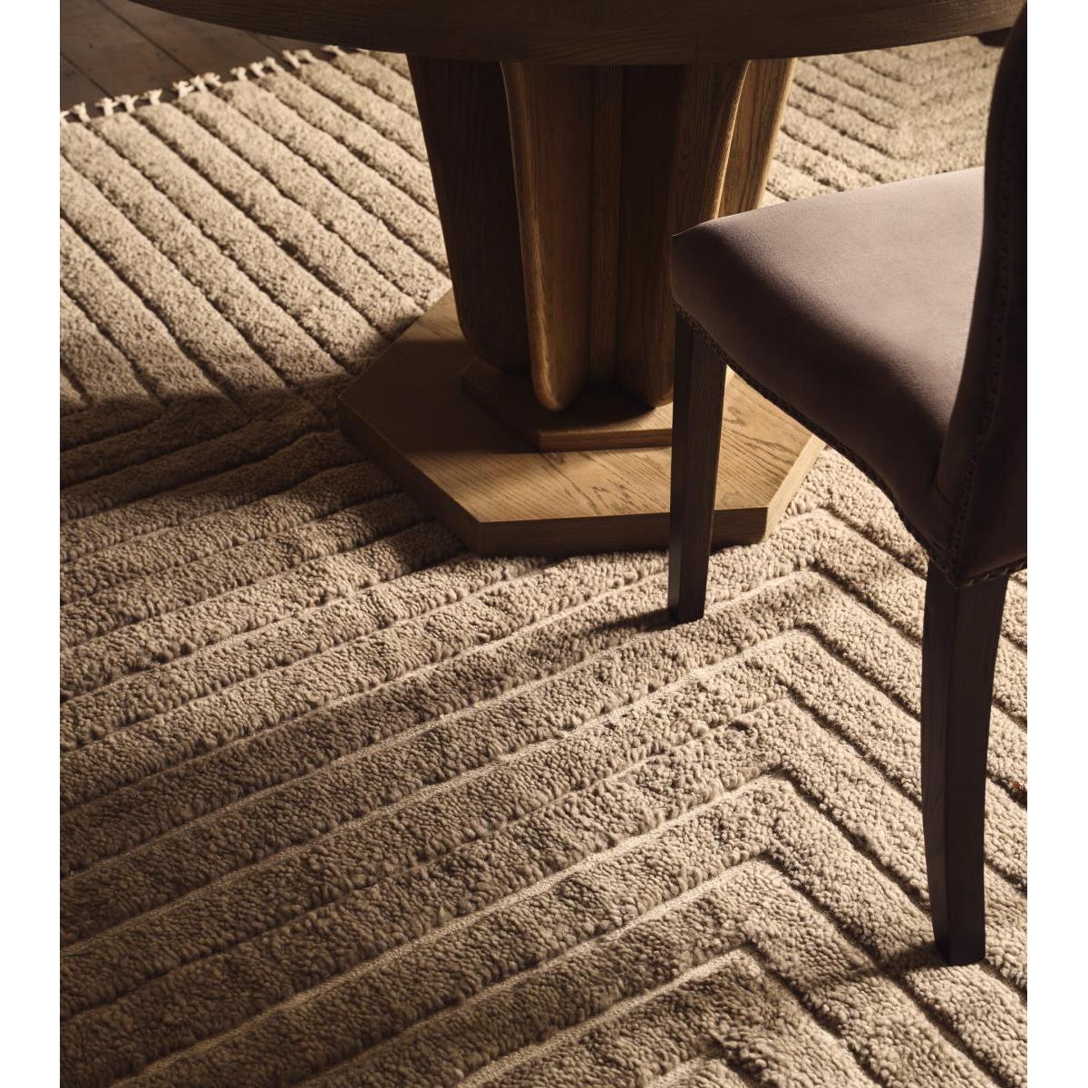 The Sareta Rug has a contemporary feel with its pleasingly irregular geometric pattern. The pattern is cleverly crafted within the hand-knotted weave of the rug, and finished with a fringe. Due to the artisanal craft process, each piece will have individual characteristics that add to their charm.