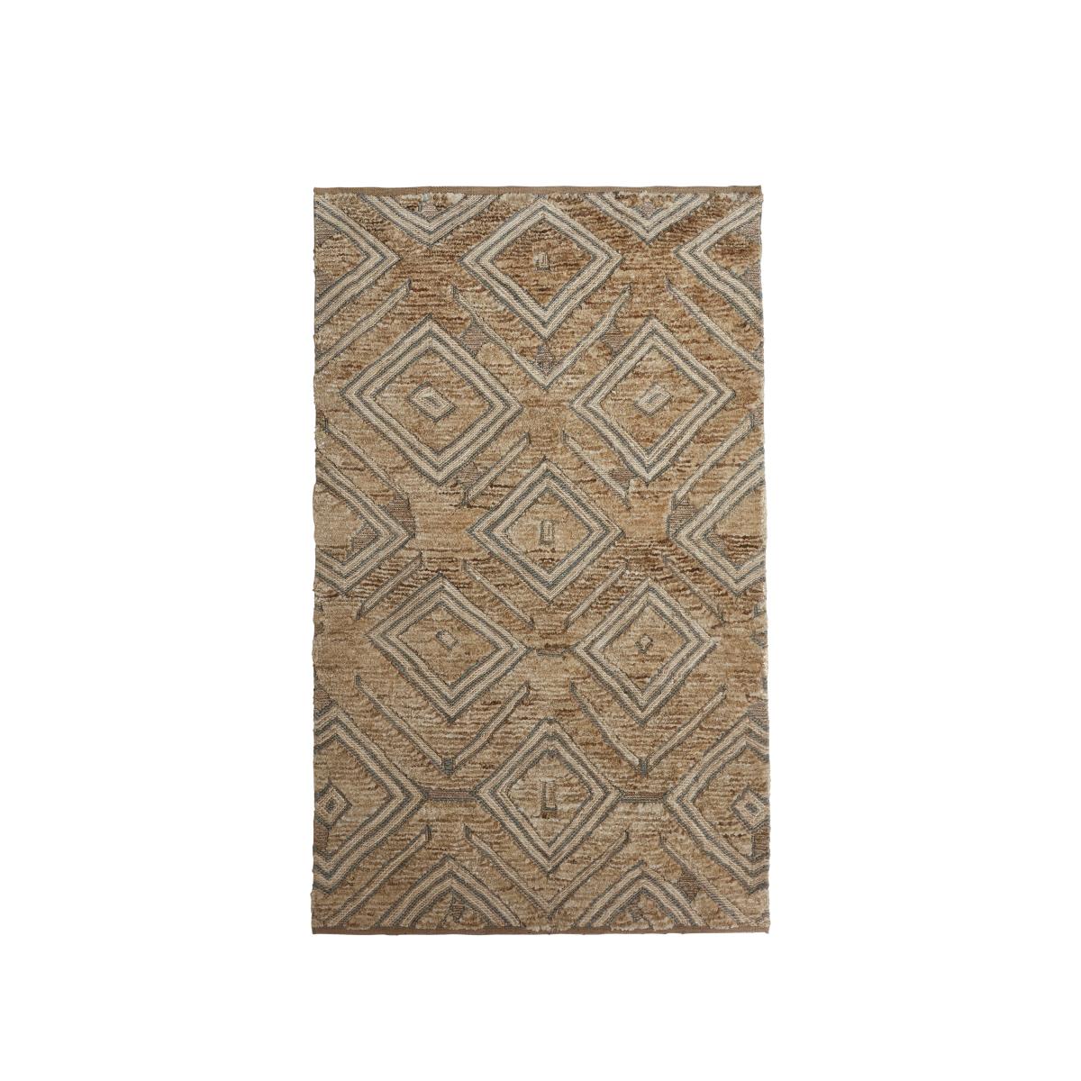 Our Schima Rug is hand-knotted by skilled artisans from natural jute fibres for texture and warmth. Its name, meaning ‘shape’ in Greek, is inspired by the striking geometric pattern featuring diamond motifs on its surface, while earthy tones add to its rustic, global appeal.