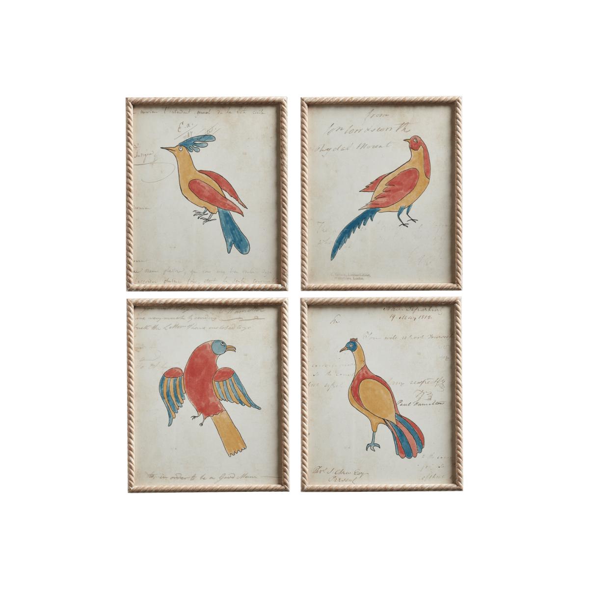 OKA, Set of Four Framed Carara Bird Prints - Multi, Wall Art, Firwood