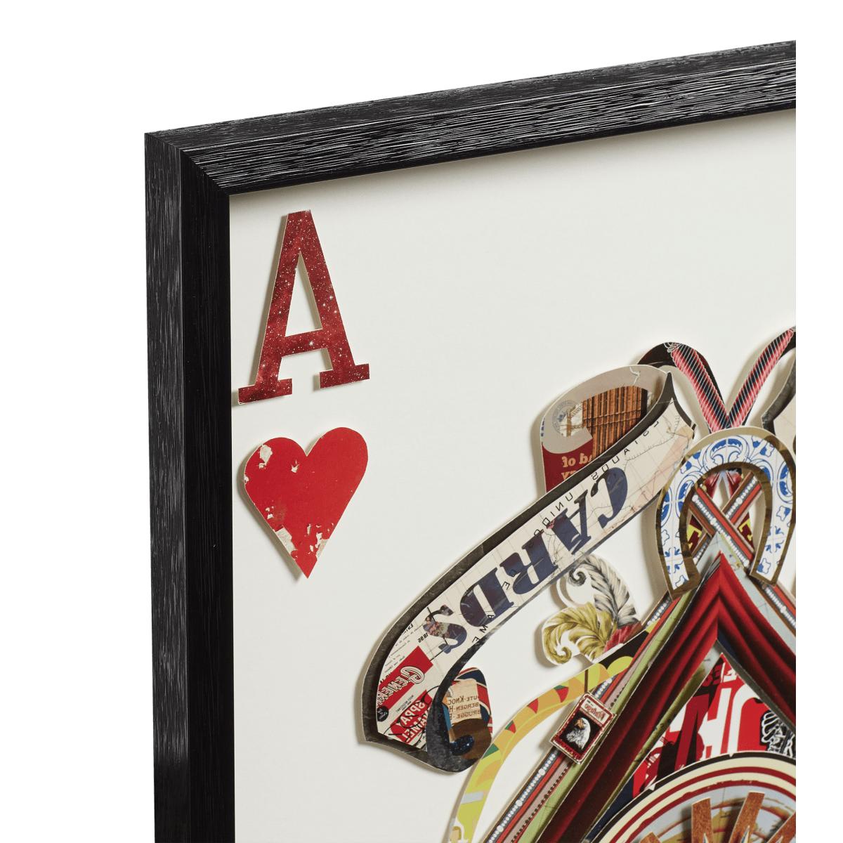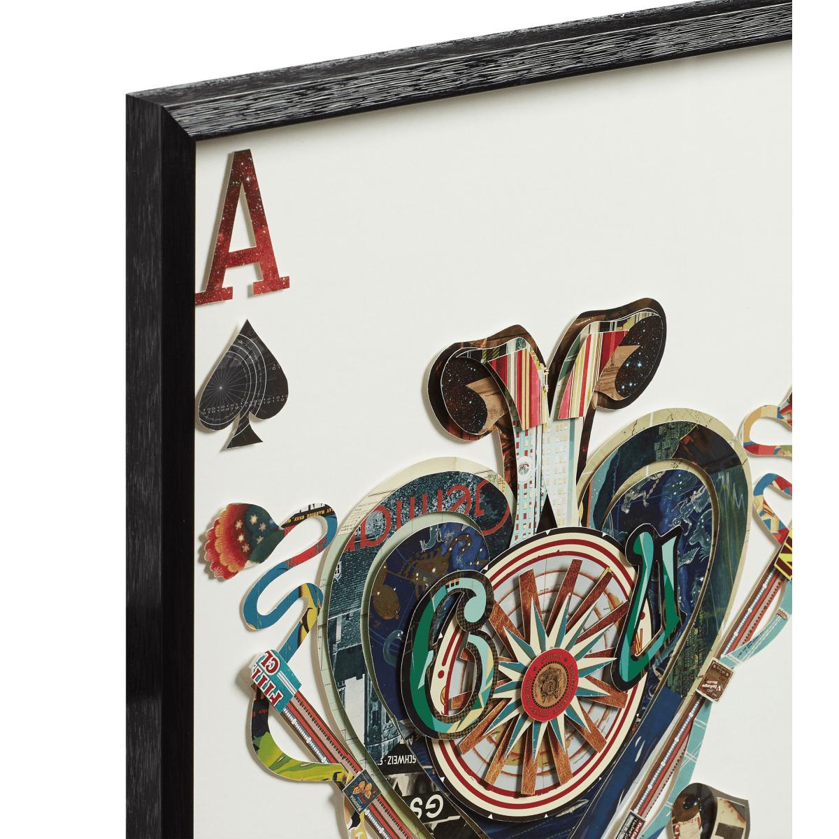 Following the popularity of our framed pairs of Ace collages, we thought it only right to offer all four as a complete set: the heart, diamond, club and spade. Hand cut by skilled creatives, the aces make an intriguing piece of modern wall art. Every piece of card that forms these collages is carefully arranged and glued together to achieve a layered, 3D effect.
