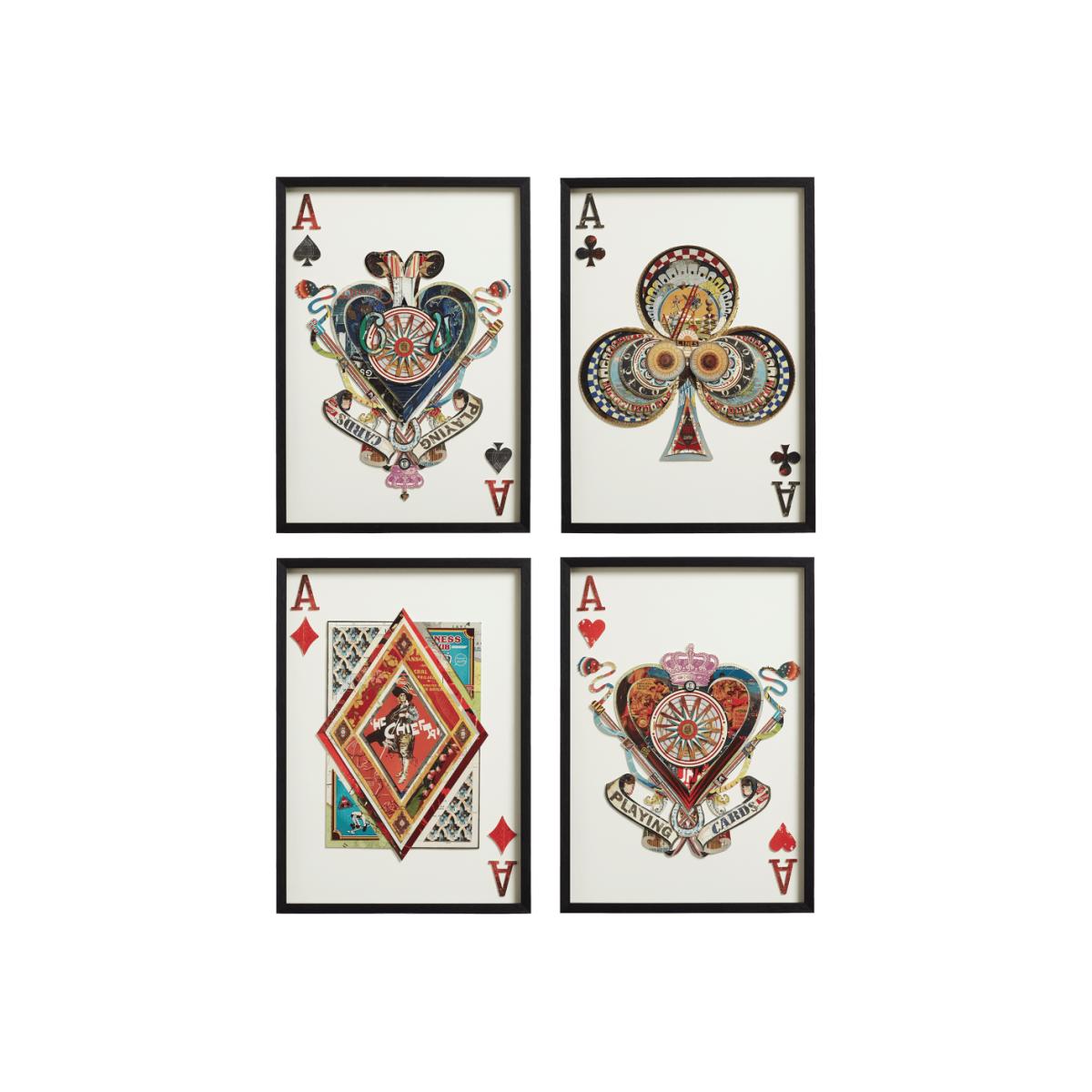 OKA, Set of Four Framed Playing Card Ace Collages - Multi, Collages, Glass/Metal/Paper