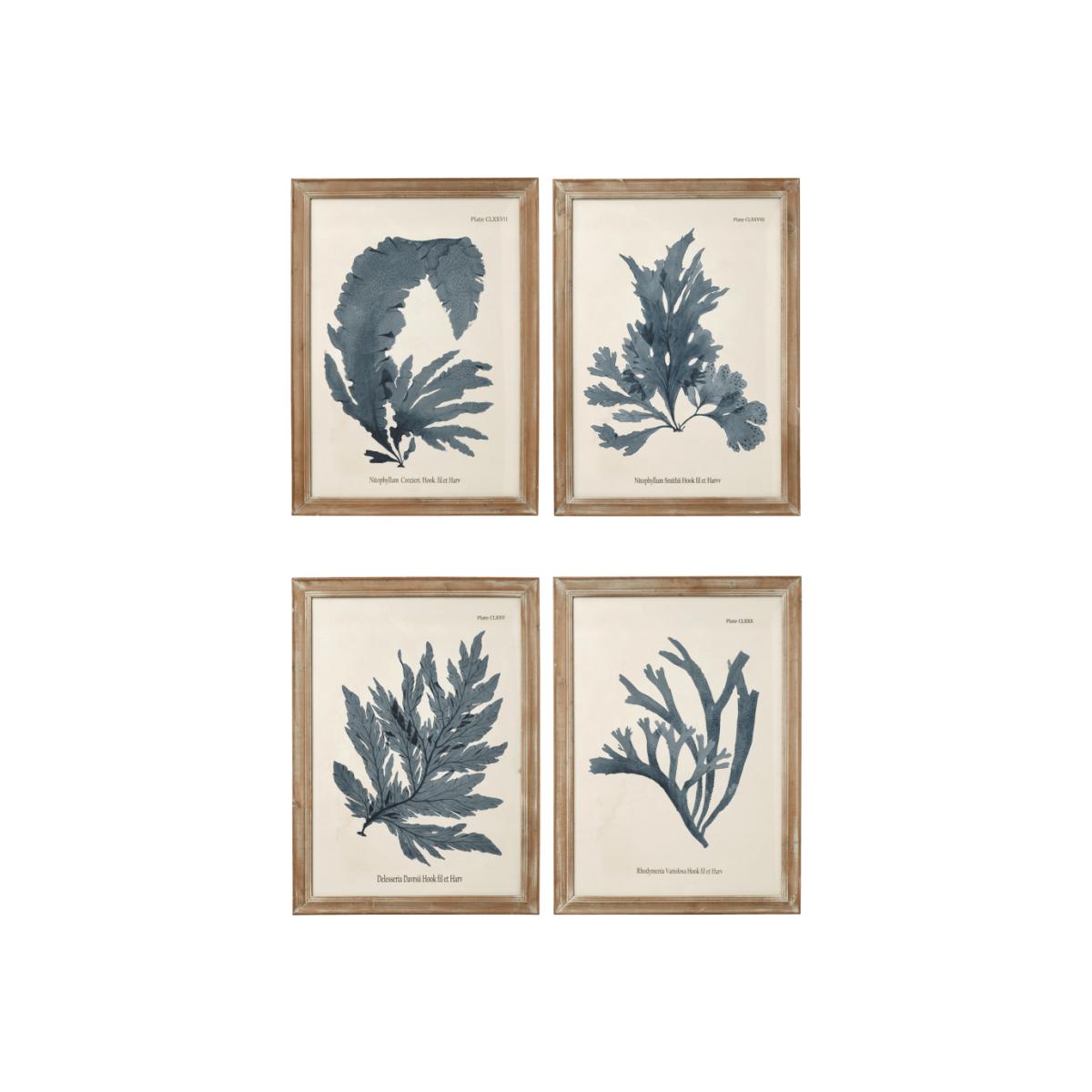 OKA, Set of Four Seaweed Framed Prints - Blue, Wall Prints, Glass/Wood