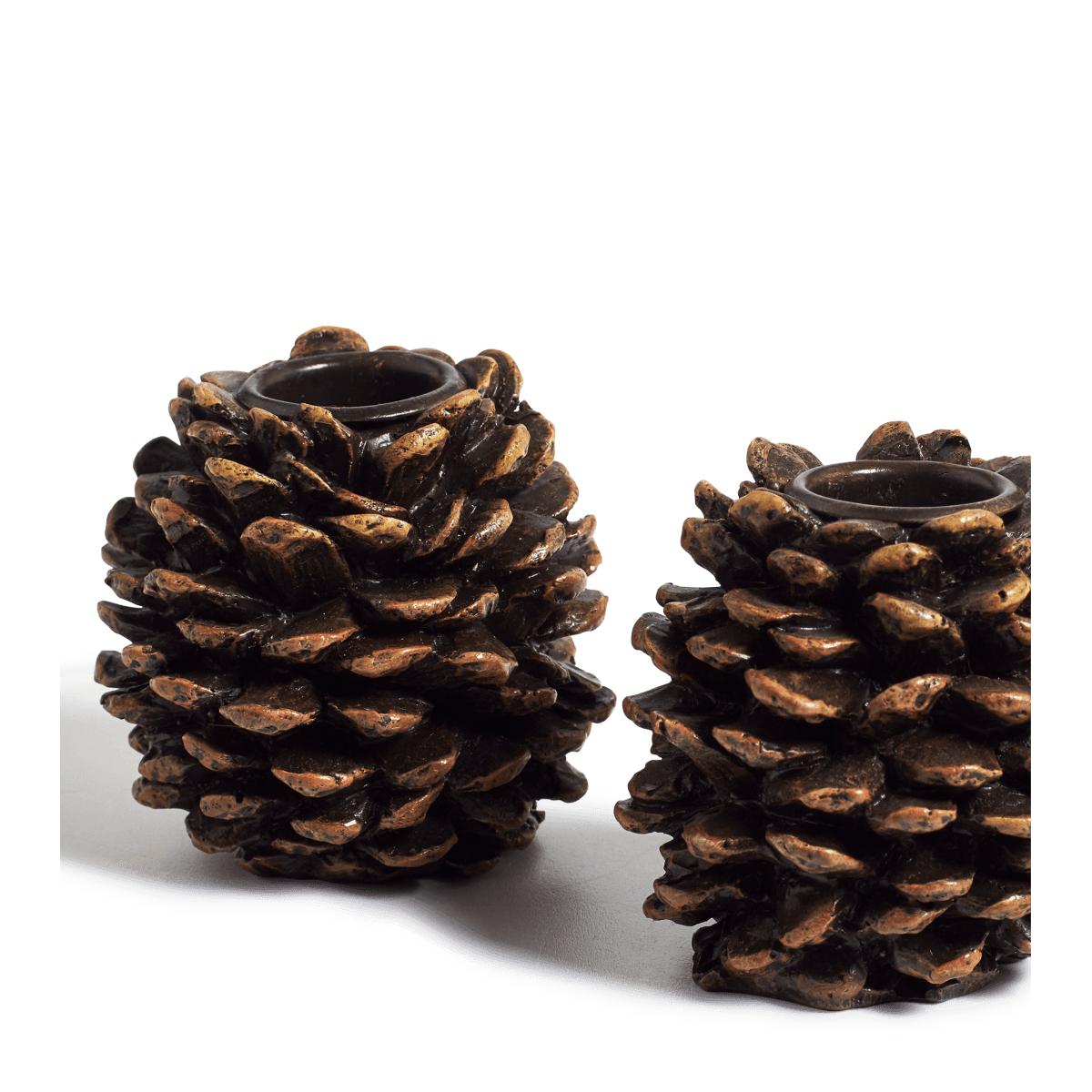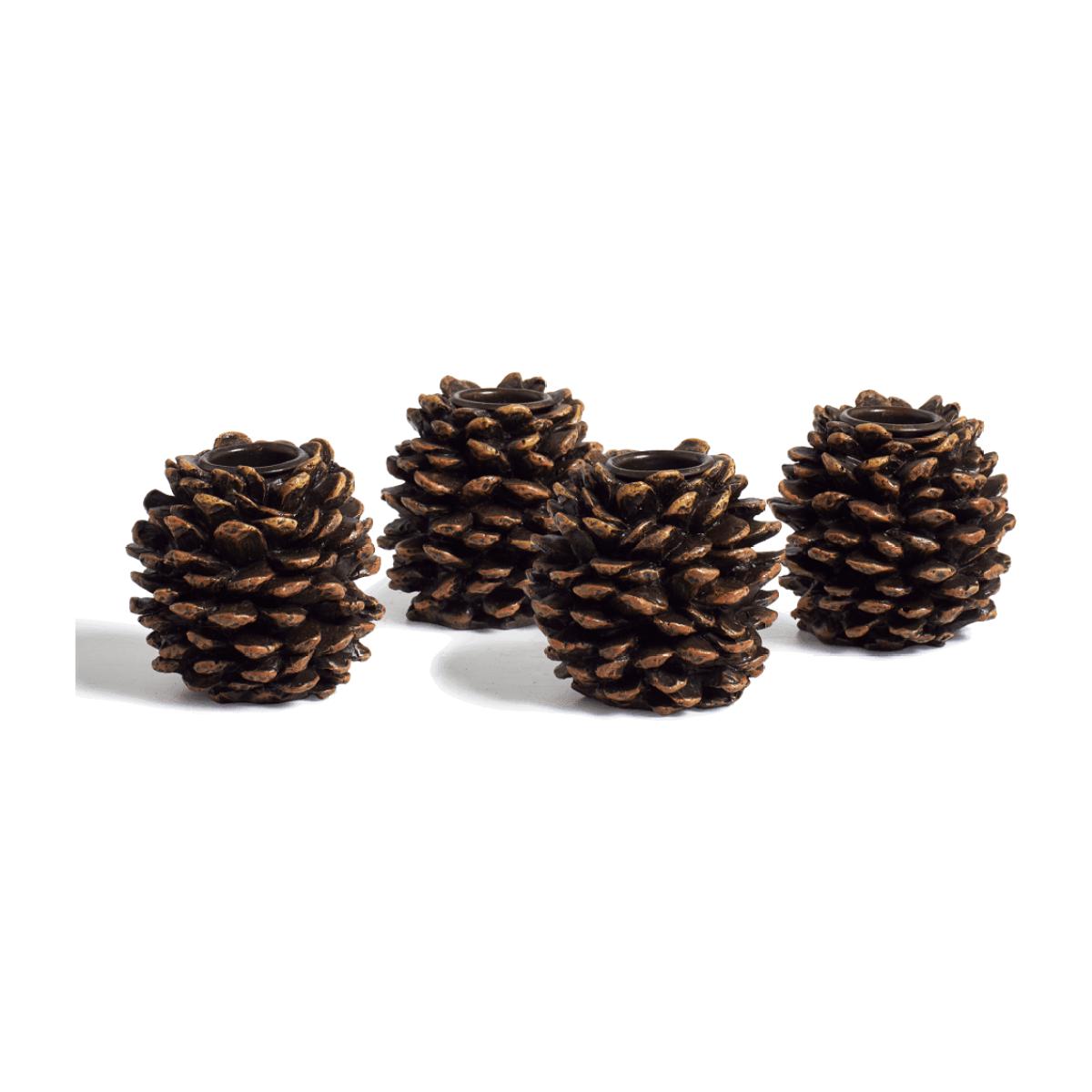OKA, Set of Four Small Pine Cone Candle Holders - Brown, Candle Holders, Aluminium/Resin