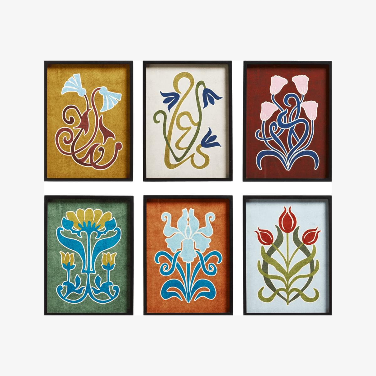 OKA, Set of Six Calla Framed Prints - Blossom, Wall Art, Firwood/Glass/Paper, Floral