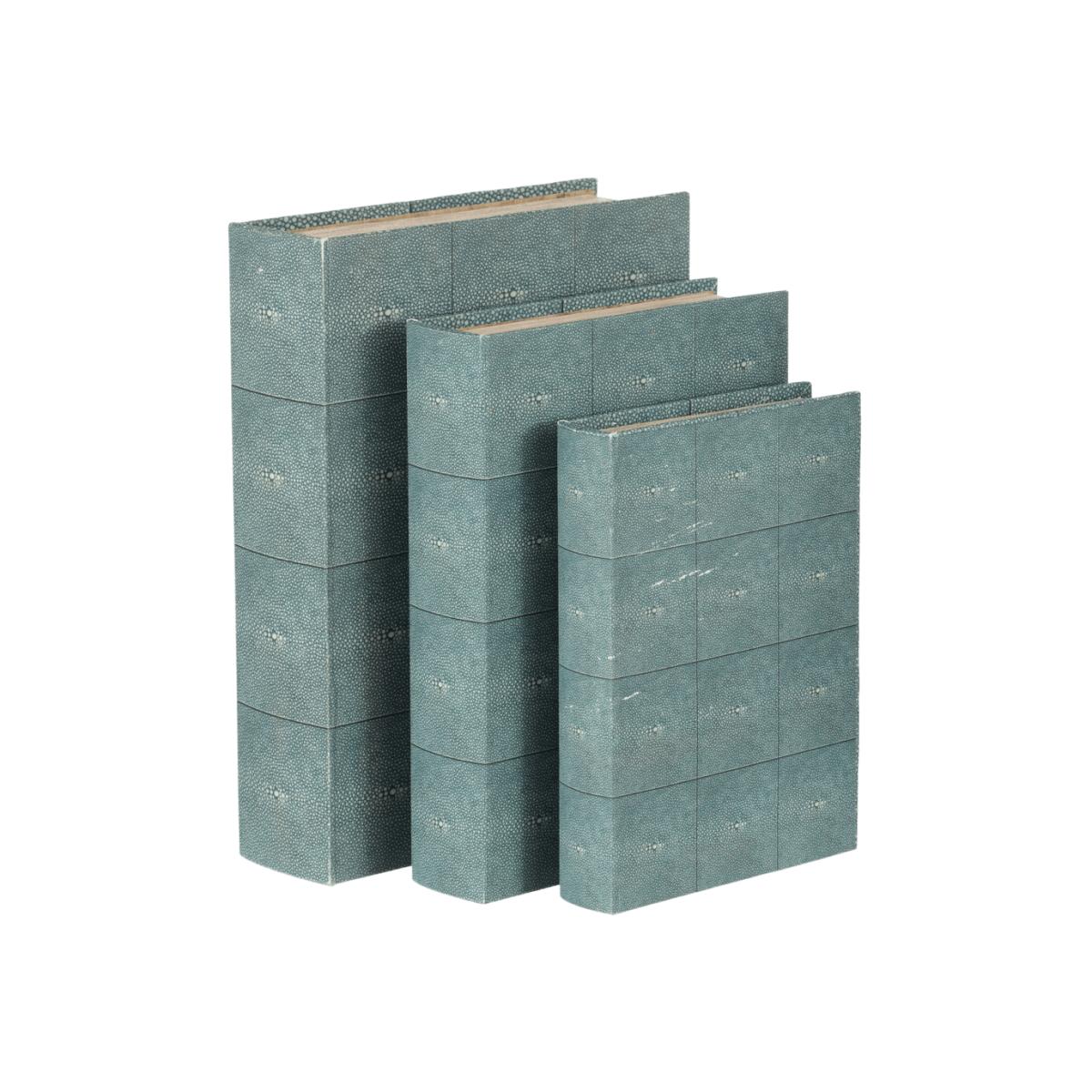 OKA, Set of Three Faux Shagreen Box Files - Turquoise, Storage Boxes, Canvas/Wood