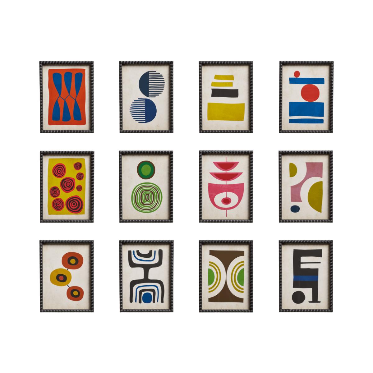 OKA, Set of Twelve Dera Framed Abstract Prints - Multi, Wall Prints, Glass/MDF Wood/Paper