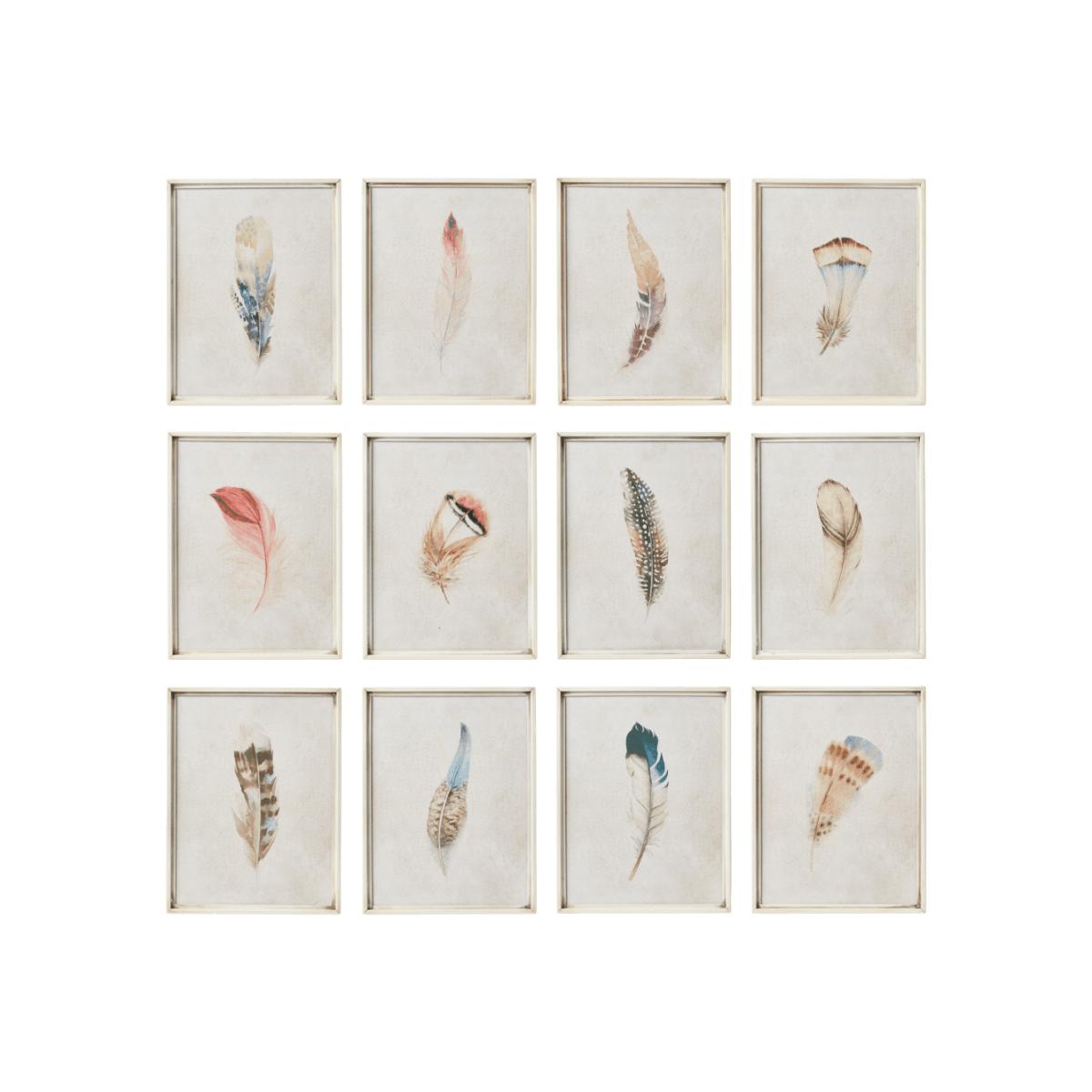 OKA, Set of Twelve Feather Prints - Multi, Wall Prints, Iron
