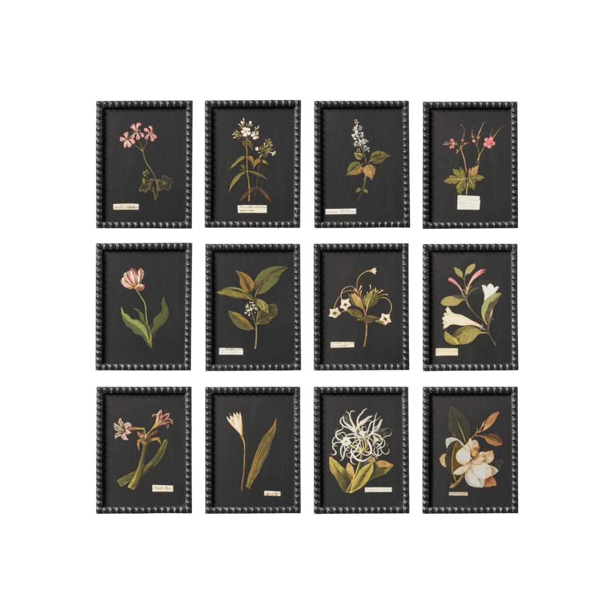 OKA, Set of Twelve Framed Flower Botanical Prints, Wall Prints, Glass/Wood