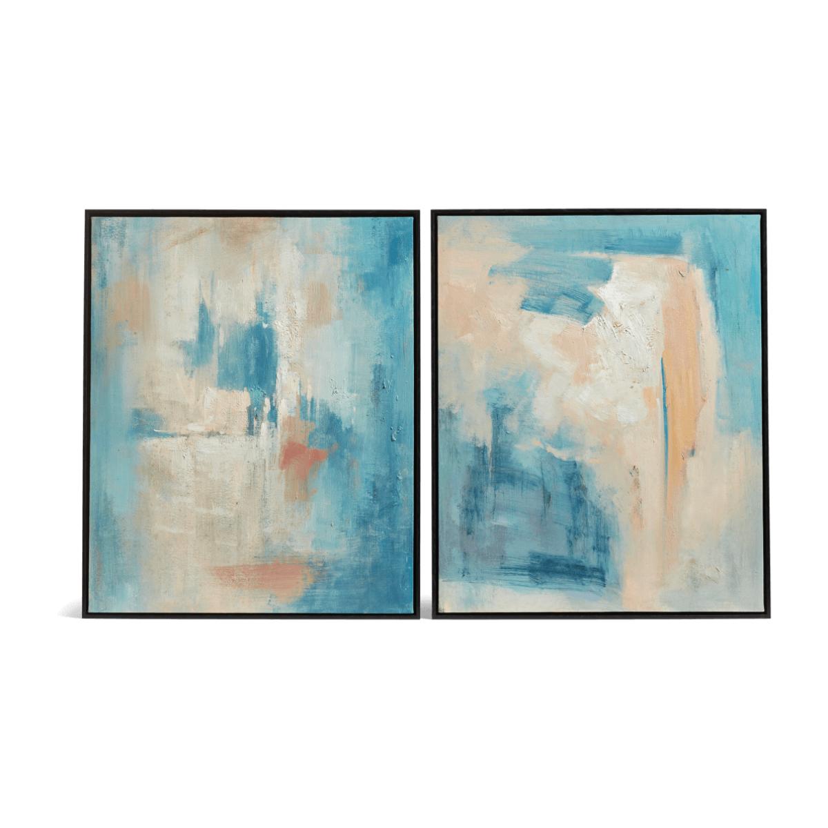 OKA, Set of Two Orageux Oil Paintings - Blue/Multi, Wall Paintings, Canvas/Pine