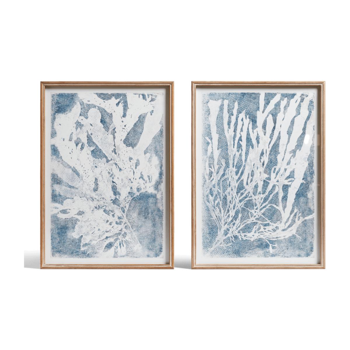 OKA, Set of Two Seaweed Prints - Blue/White, Wall Prints, Firwood/Glass/Paper