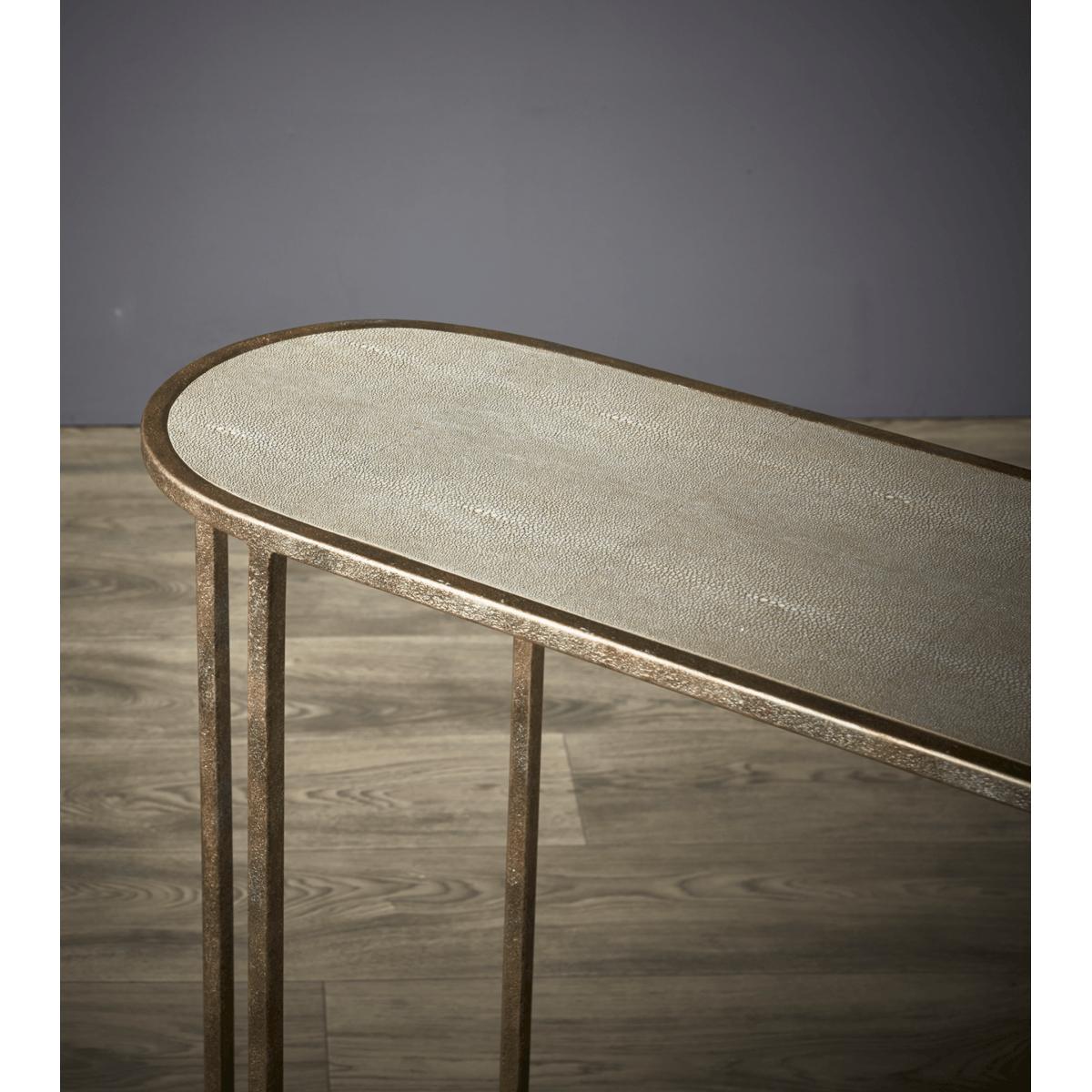 If you like geometric interiors, you’ll love the Shikotan Console Table. Like a puzzle, its design features several connecting shapes – it could well be the missing piece your home needs. Crafted with flexibility in mind, this space-saving console table is slender in style, but it can still accommodate your favourite lamp or vase. Additionally, its taupe faux shagreen finish complements a wide array of furniture and accessories.