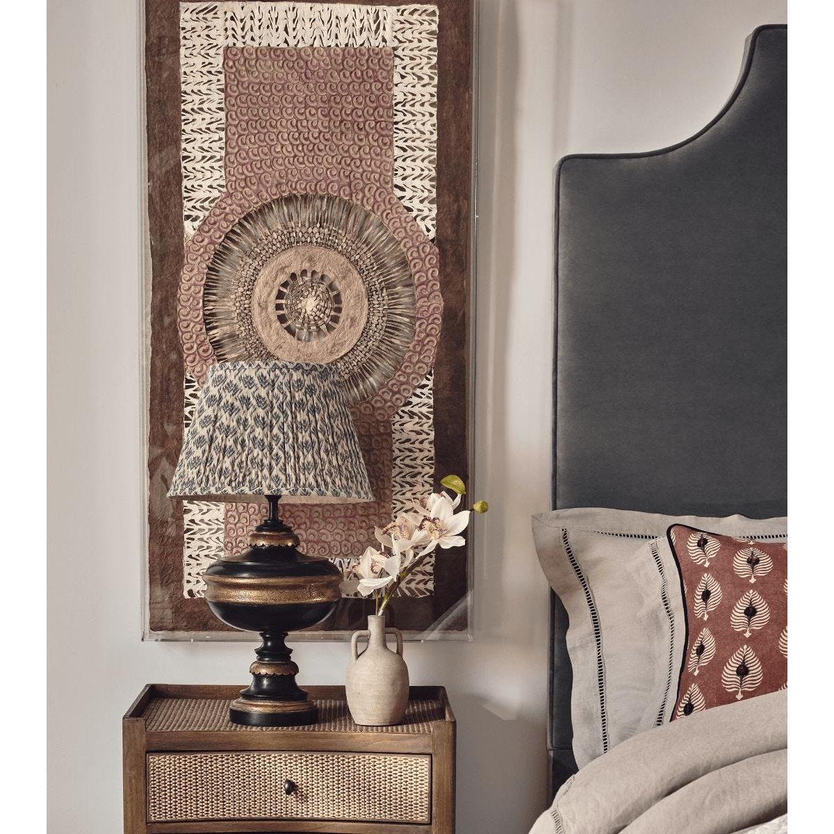 I love this piece for its mix of natural tones and textured detail, making it a versatile addition to a variety of interiors. It works particularly well in neutral or earthy schemes, adding warmth and visual interest without overwhelming the space. For practical styling tips, consider pairing it with other woven or linen textures to create a cohesive look, or hang it above a simple console or sideboard to let the artwork stand out. It’s also a great choice for adding subtle pattern and depth to minimalist or modern interiors, thanks to its understated yet tactile design.