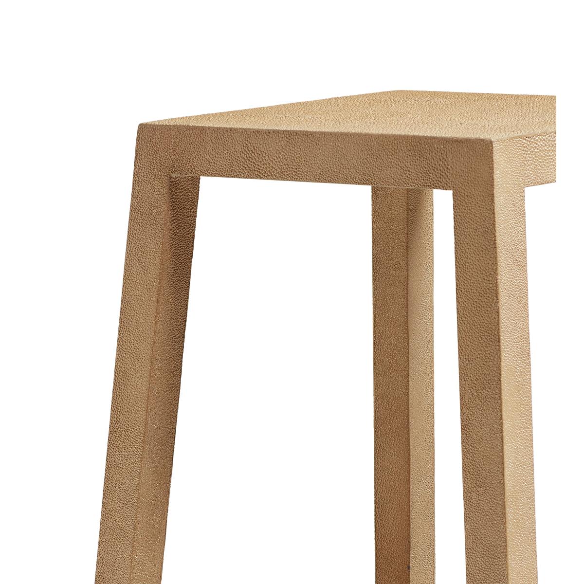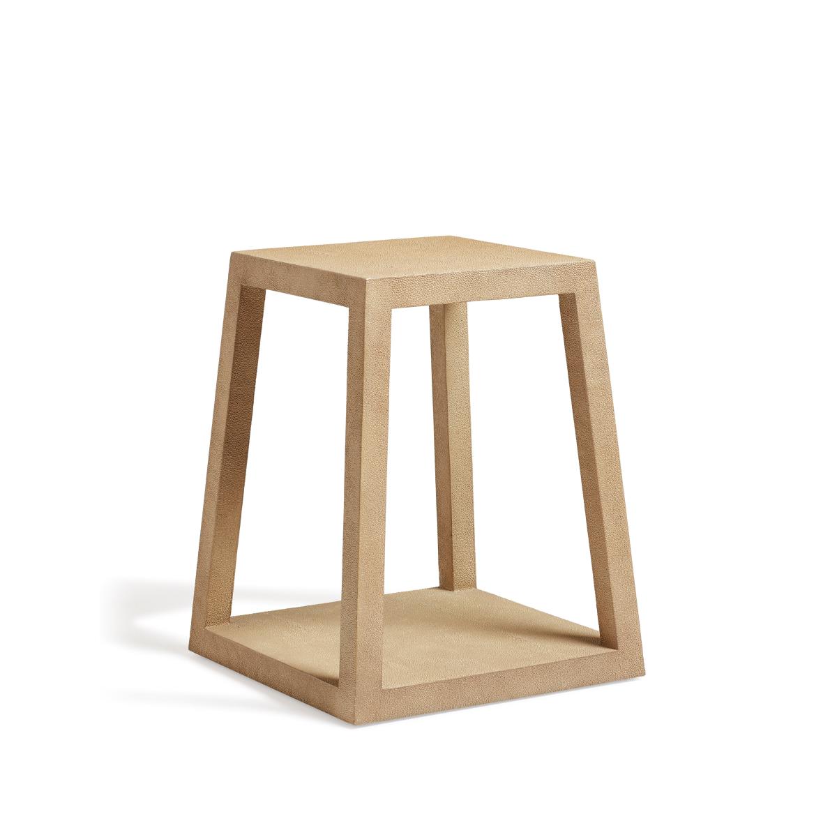 Our Sibley Side Table is an addition to our range of Faux Shagreen pieces, this one in a pleasing Oatmeal hue. Its trapezium-shaped frame and two surfaces are fully clad in the textured material. A useful addition to any sitting room.