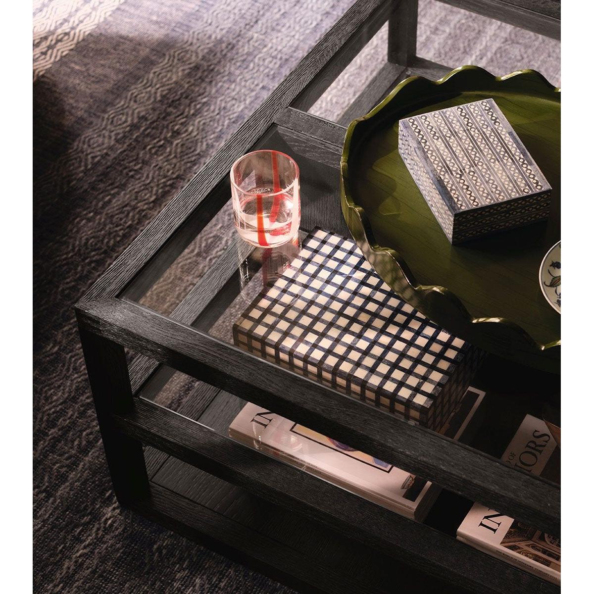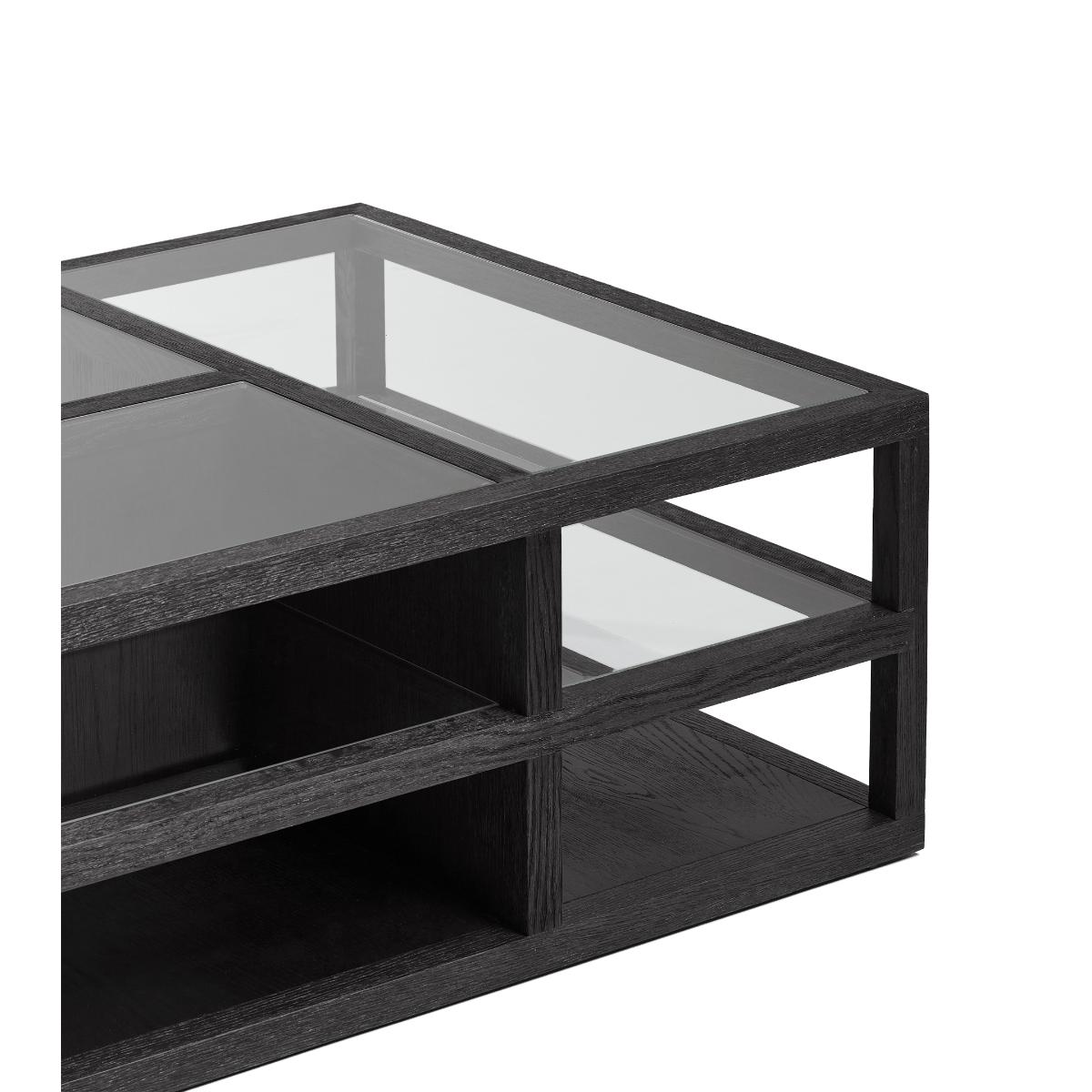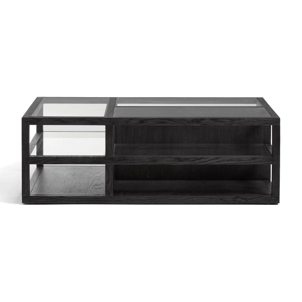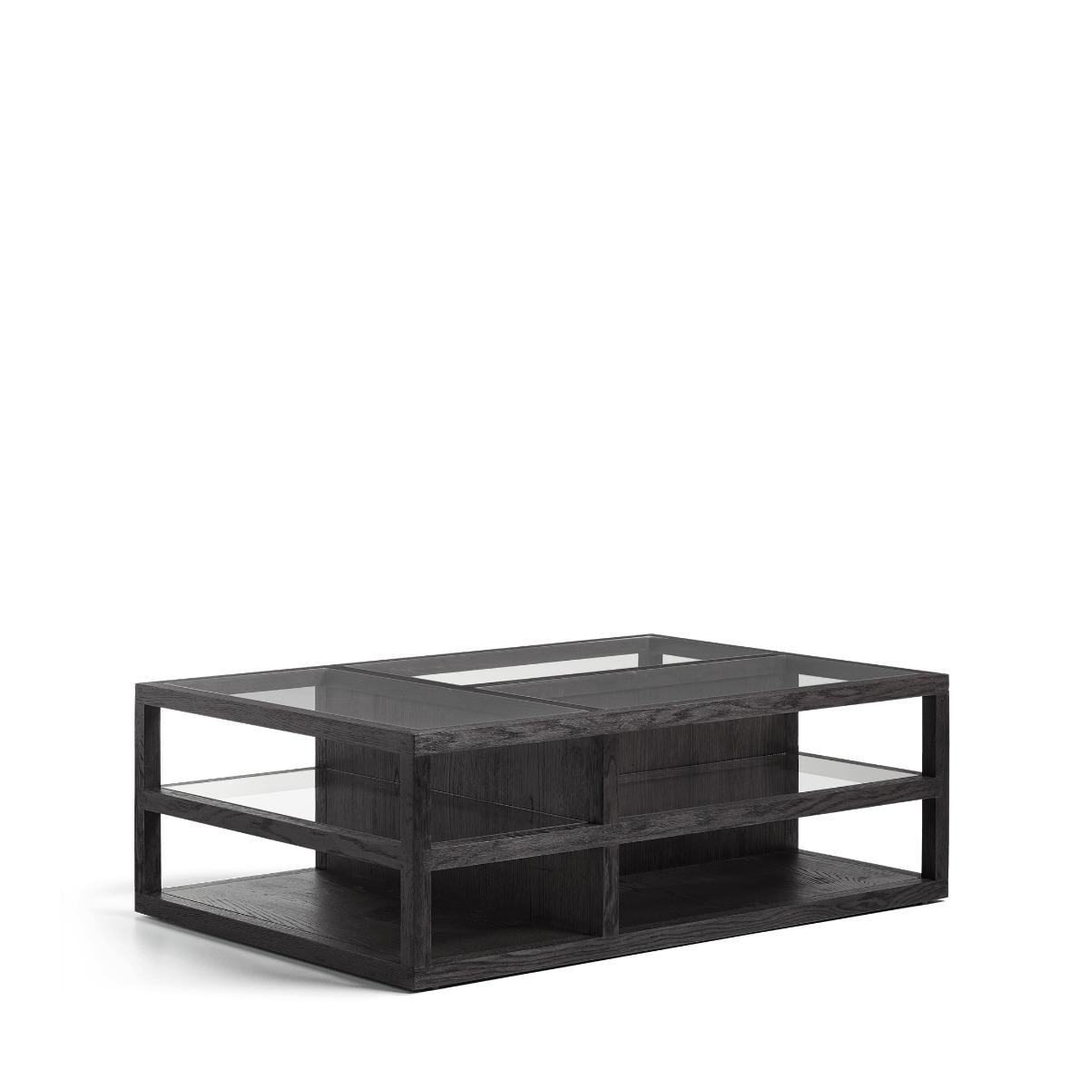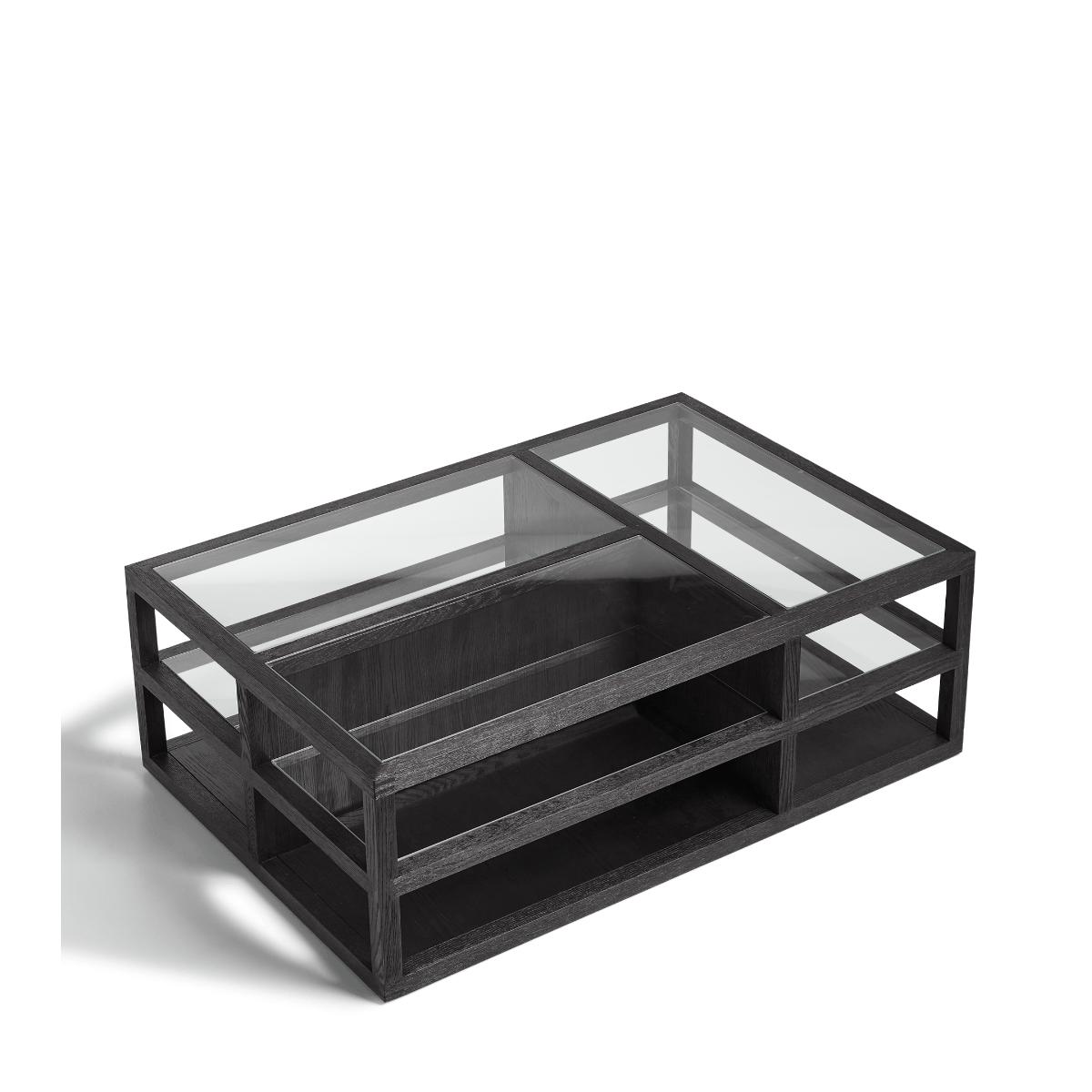 Enjoy the pure lines of our Alexey Coffee Table, now in a more petite form. Fitting together like a jigsaw puzzle, its sections offer neat nooks to store games, books, and decorative accessories. The top surface and middle shelves are formed of glass so that you can admire the seamless craftwork that goes into the table’s structure. The honesty of construction is visible in the comb joints on the table’s corners, where the wooden panels slot together without any need for screws.