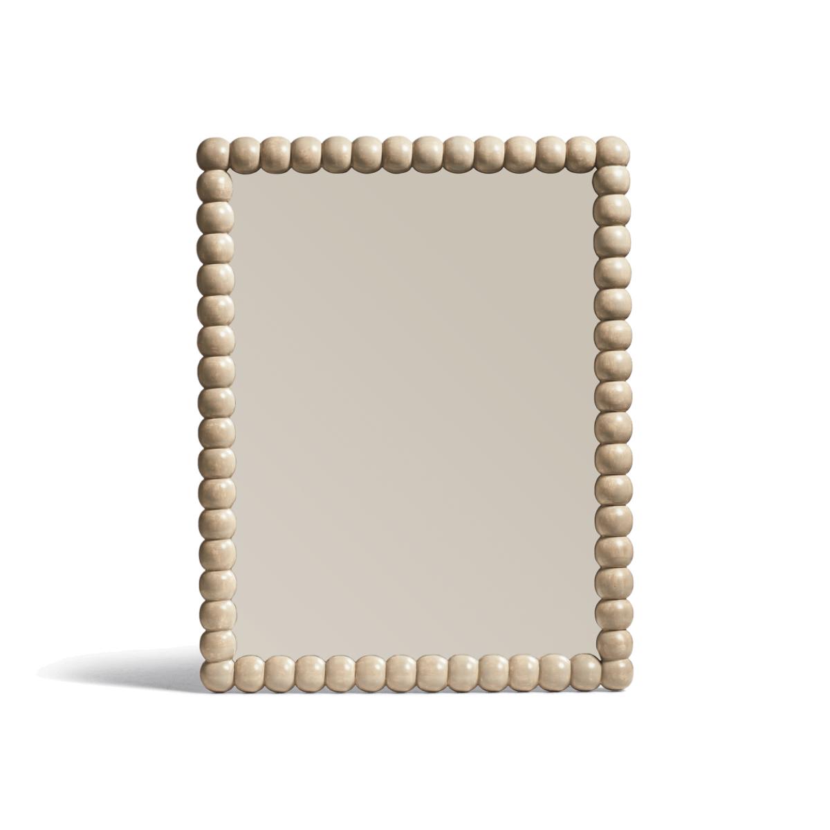 Our Bobina Mirrors are inspired by bobbin furniture – otherwise known as spool furniture – from the late 17th century. This style had legs that were generally lathe-turned into ornamental shapes in order to make a feature of them. Drawing on this characteristic, the frame of our Small Bobina Bobble Mirror is hand carved from mango wood into pleasing spherical shapes, which is then hand painted a neutral cream shade and finished with a high gloss which accentuates its form.