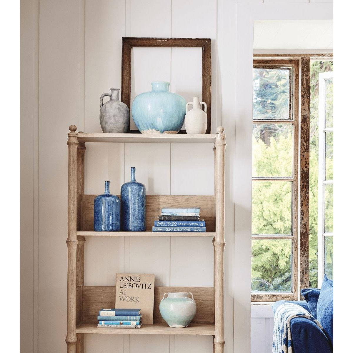 I love this OKA small Zabiya vase for its simple, clean silhouette and striking blue glaze - it adds colour without overwhelming a space. It works beautifully in both modern and eclectic interiors, especially when placed on a side table, shelf or mantelpiece. For practical styling, try pairing it with a few dried grasses or fresh flowers in complementary tones to create visual interest, or display it alone as a sculptural piece for a minimalist look. Its compact size makes it versatile, perfect for injecting personality into small nooks or adding a pop of colour to neutral palettes.