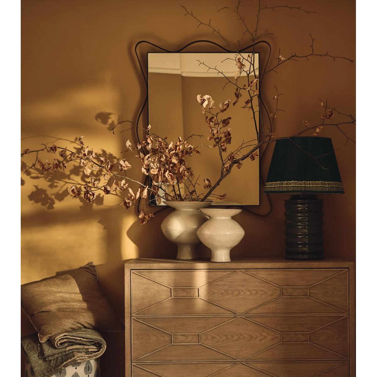 I love this mirror for its sleek, contemporary edge, making it a versatile piece for both modern and industrial interiors. The dark metal framing and wavy border add visual interest without overpowering a space, making it ideal for bedrooms, hallways, or living areas. It pairs well with minimalist or monochrome palettes, but can also provide a striking contrast in warmer, textured interiors. Practical styling tips include hanging it to bounce light and create a sense of space, or leaning it against a wall for a more relaxed, informal look. It’s a great statement piece that combines function with style, offering both practicality and a touch of modern sophistication.